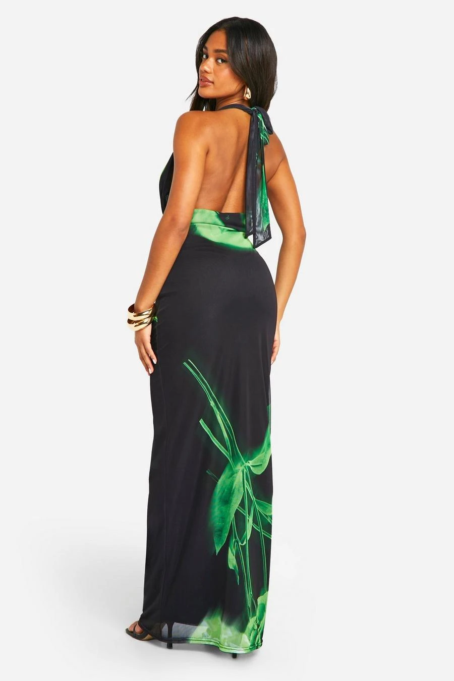 BOOHOO Floral Mesh Plunge Maxi Dress