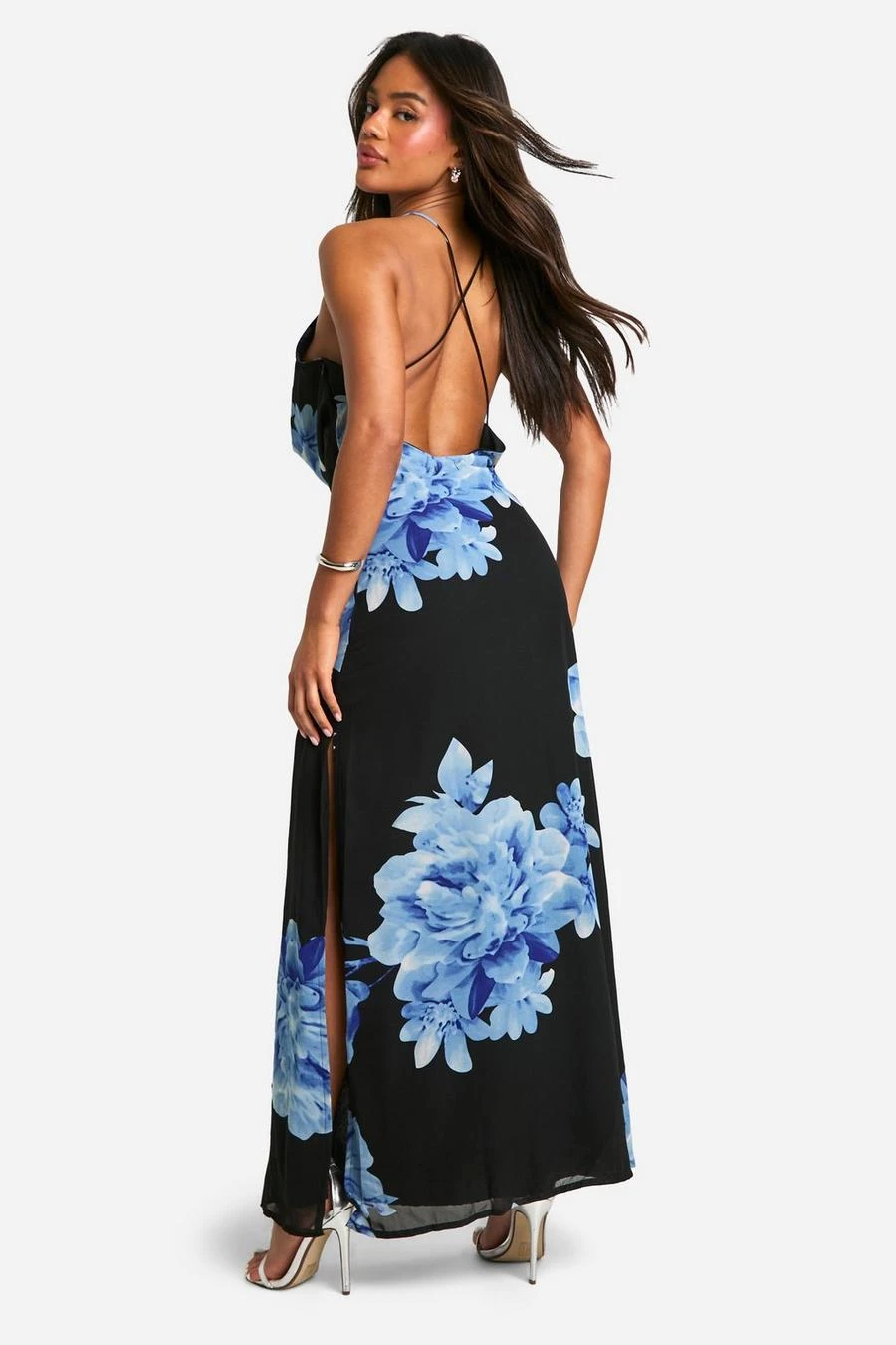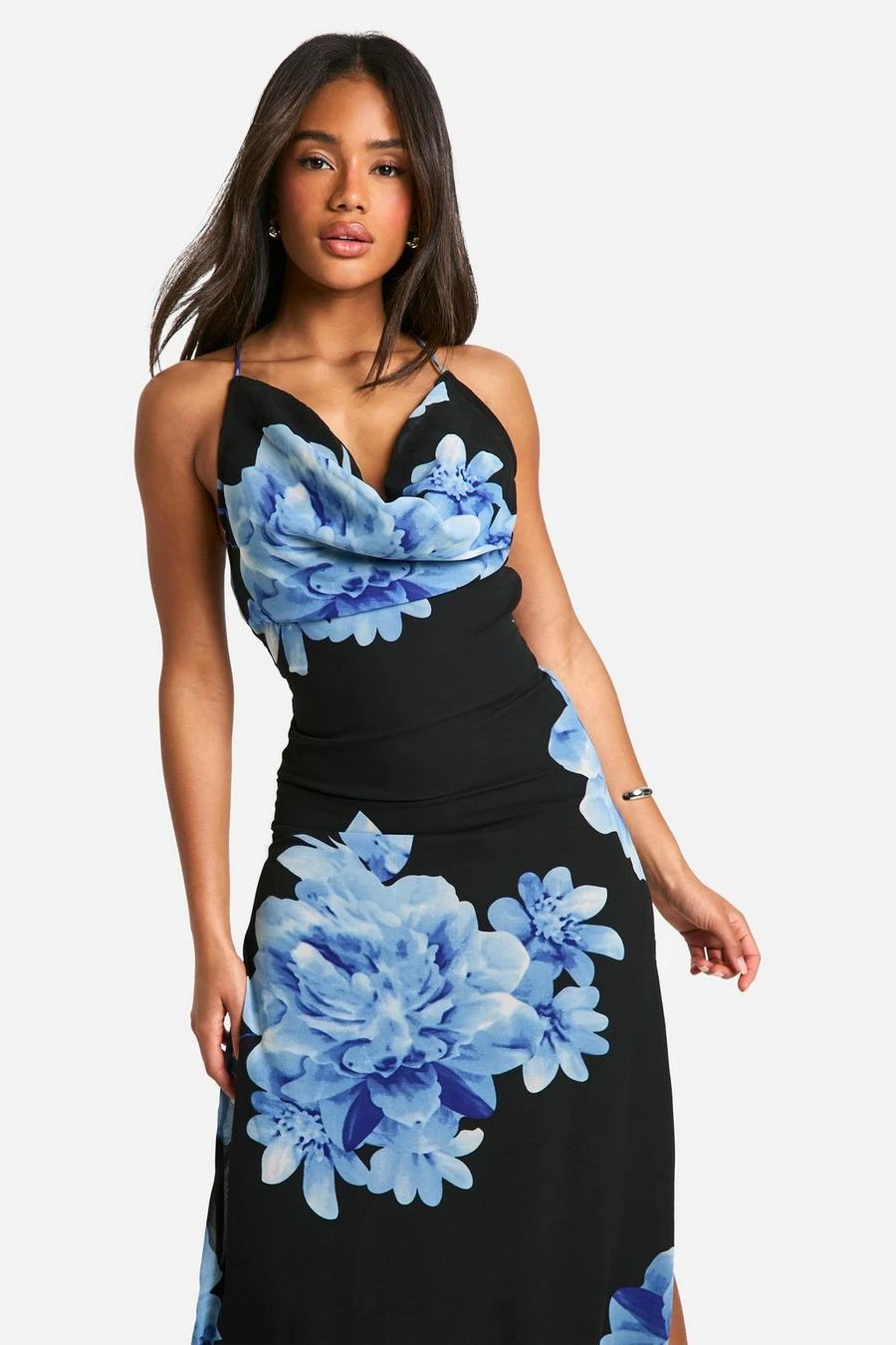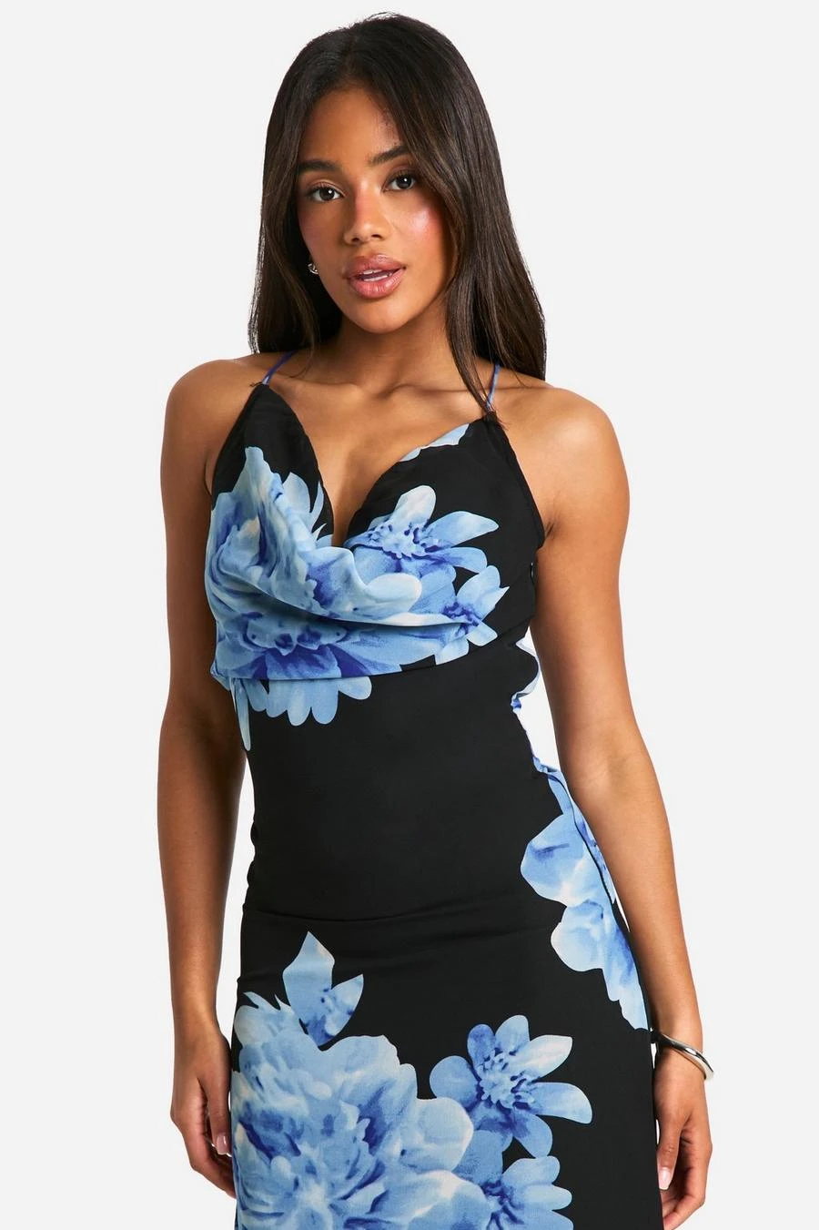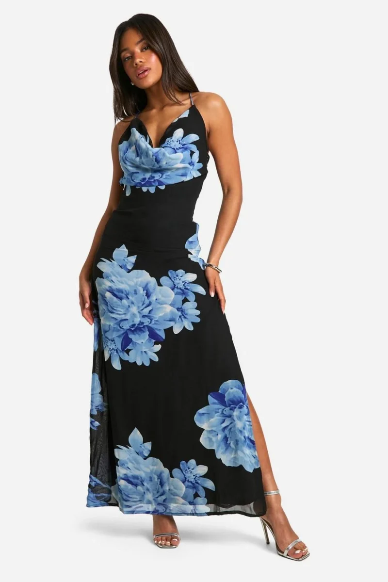BOOHOO Floral Print Cowl Neck Maxi Dress