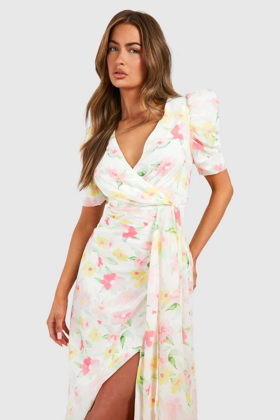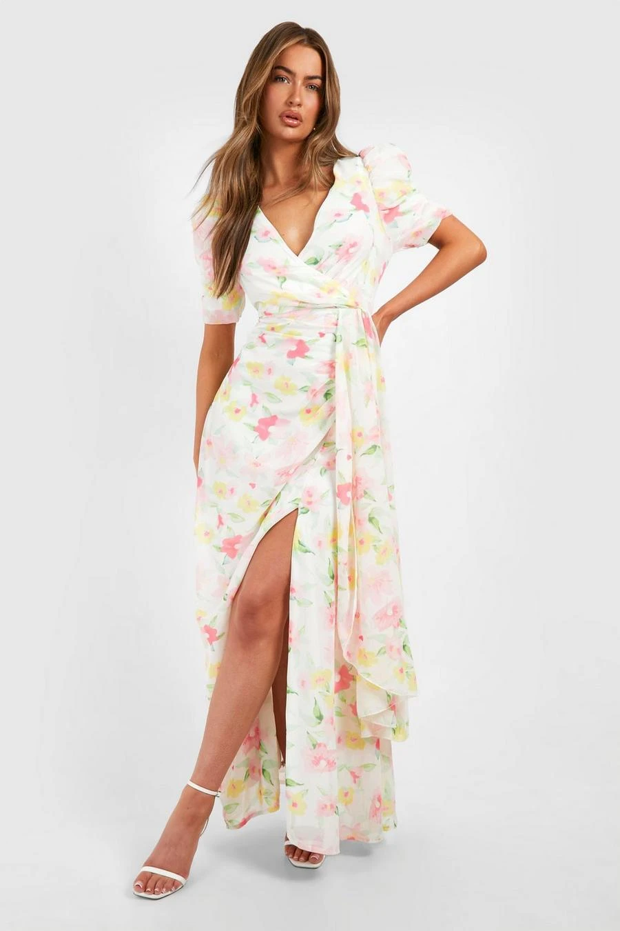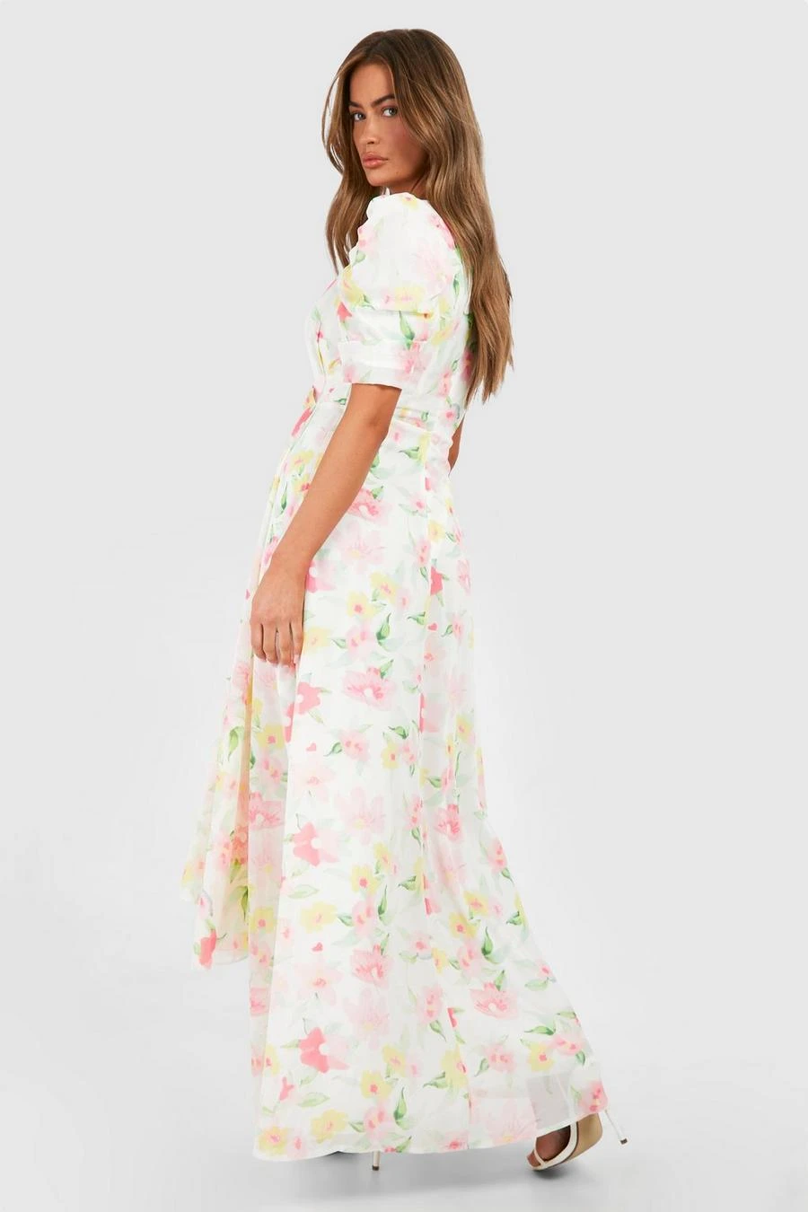 BOOHOO Floral Print Drape Detail Maxi Dress