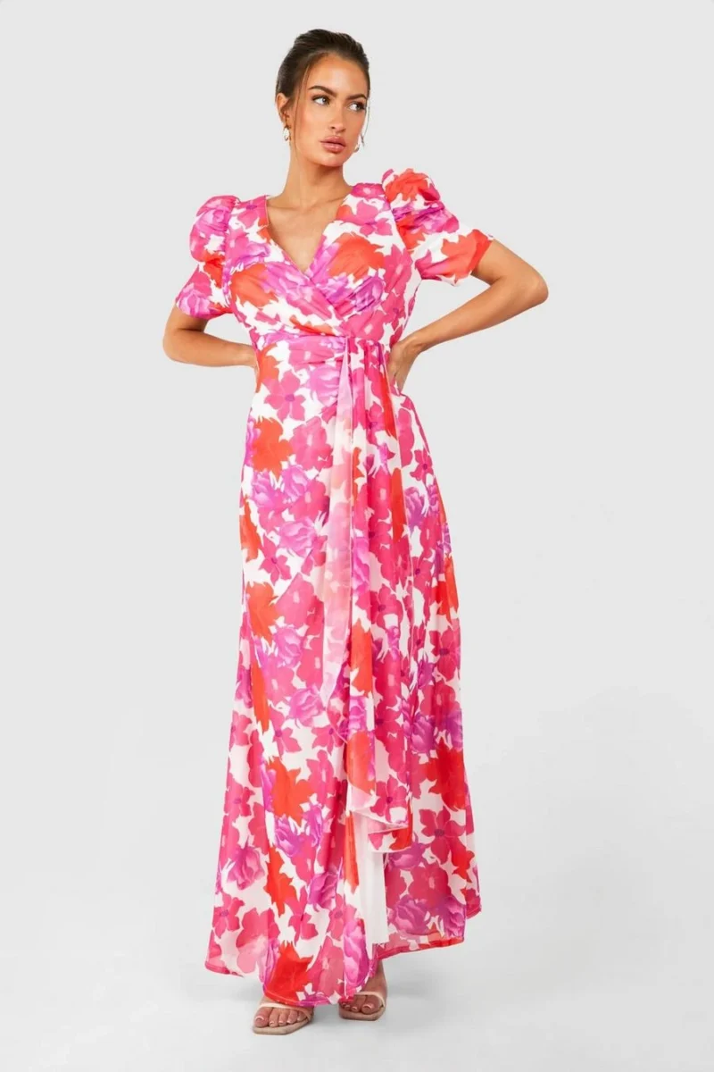 BOOHOO Floral Print Wrap Maxi Dress
