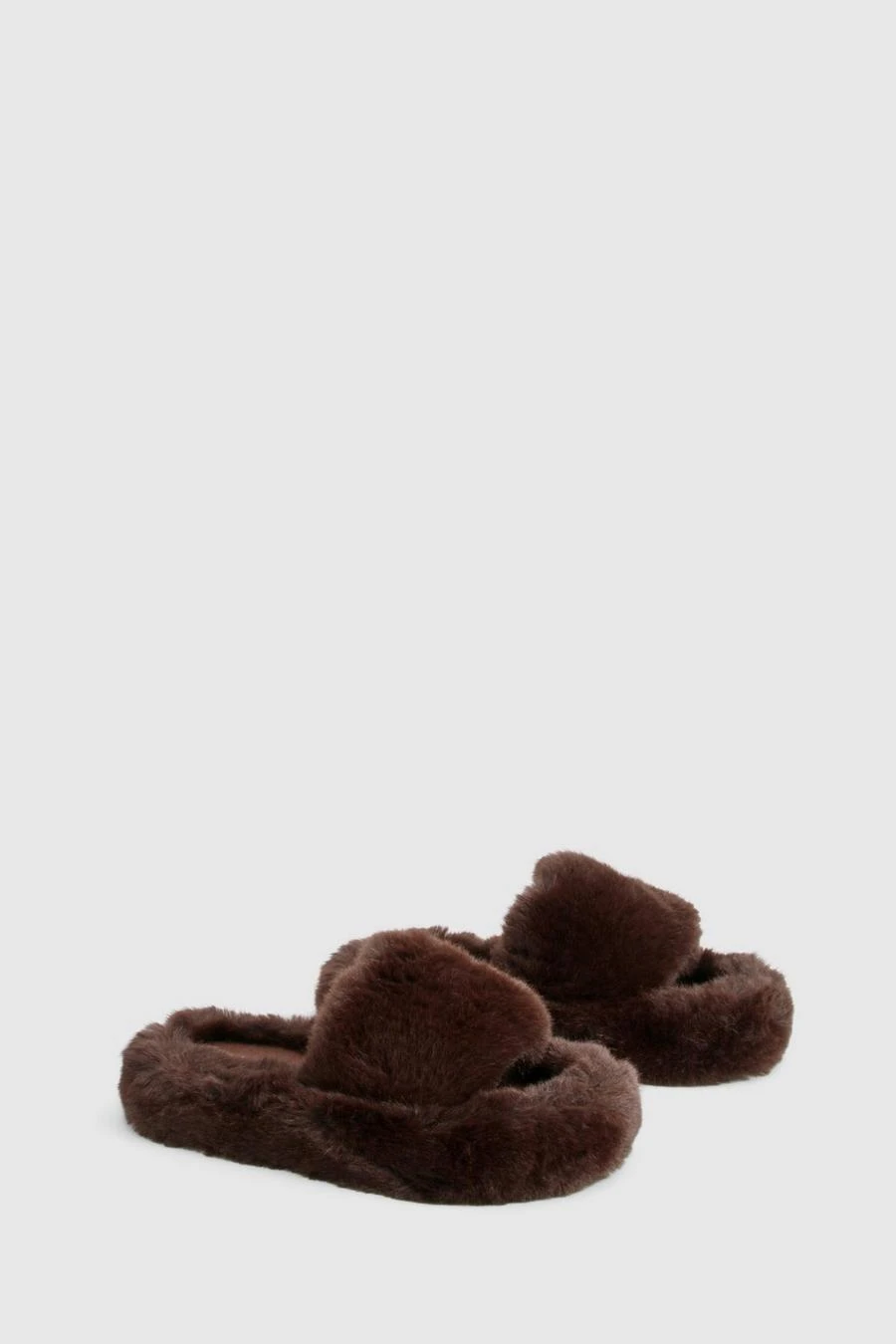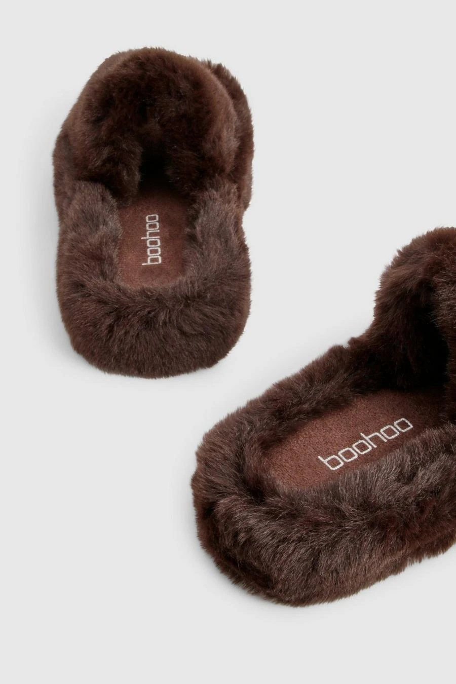 BOOHOO Fluffy Faux Fur Platform Slippers