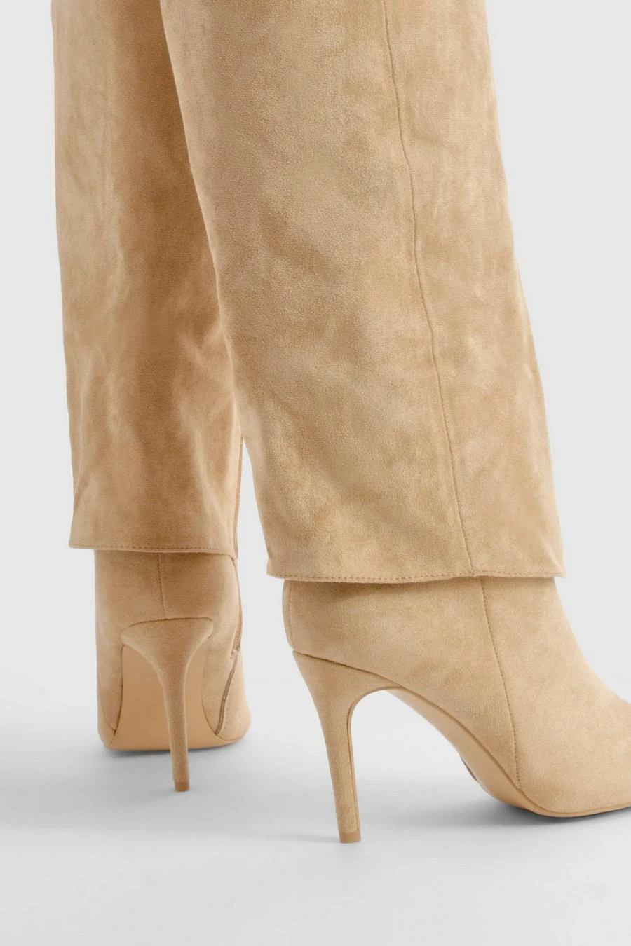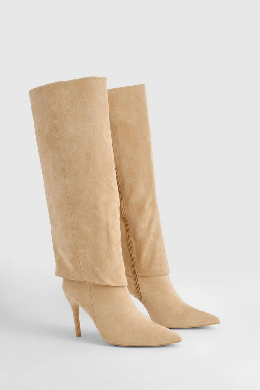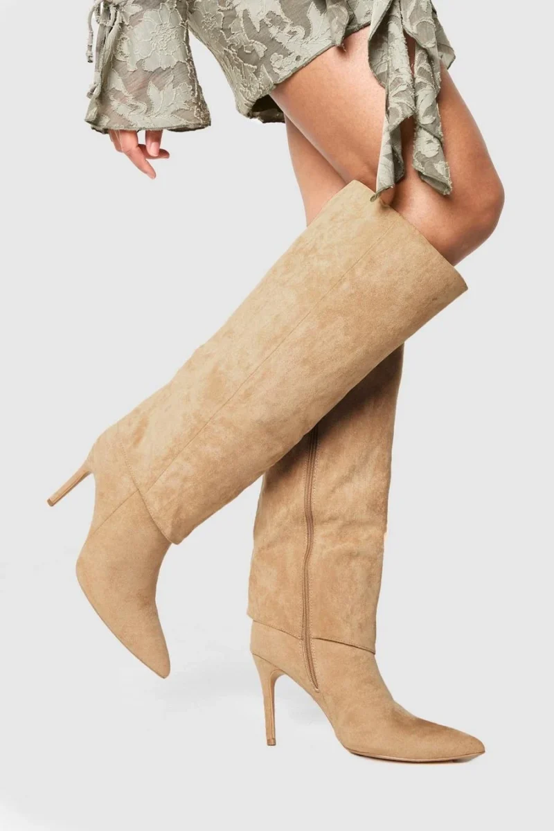 BOOHOO Foldover Pointed Heeled Knee High Boots