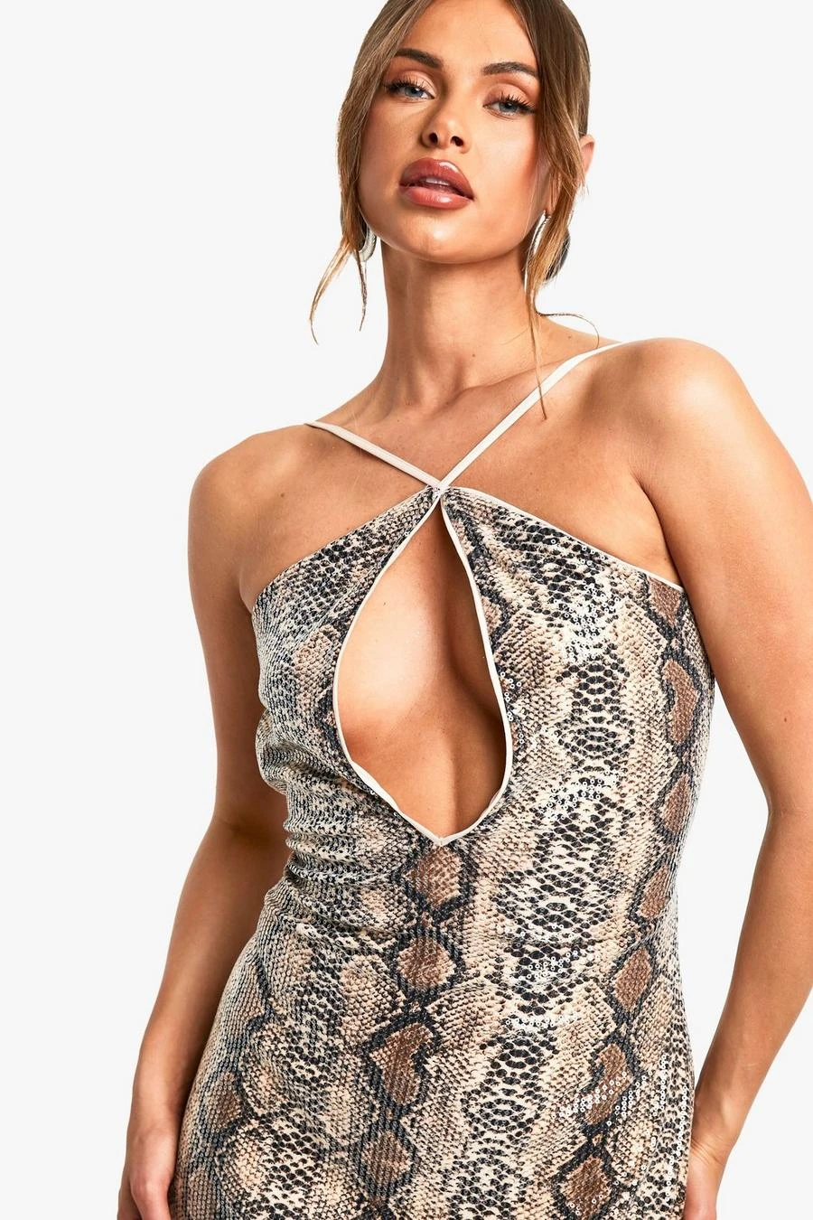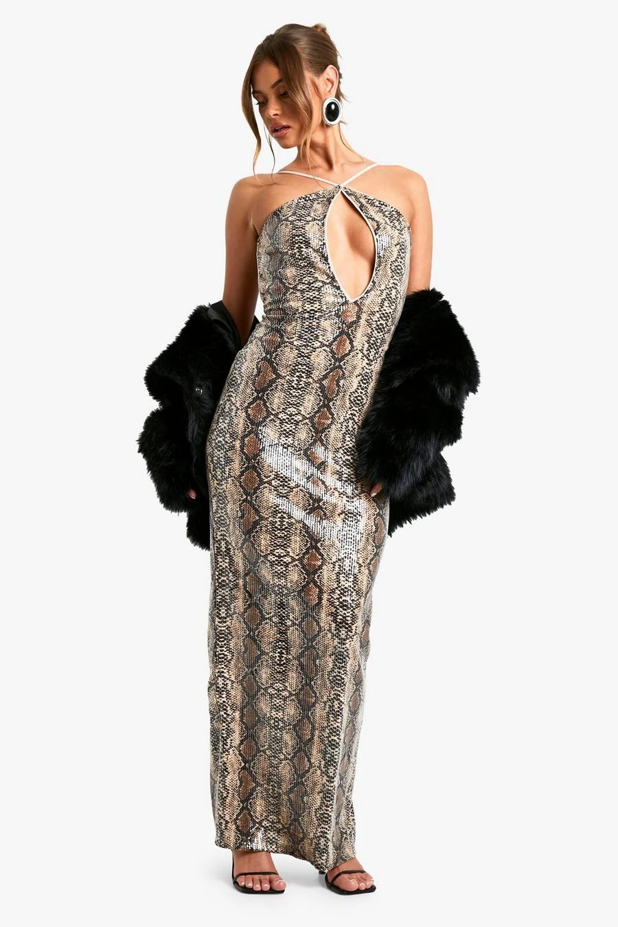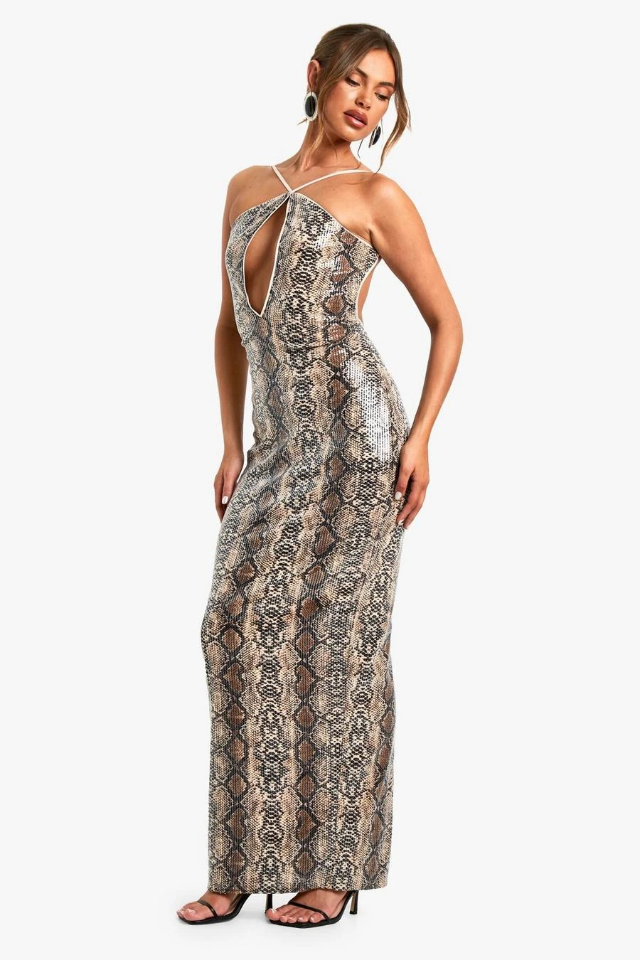 BOOHOO Halter Neck Cut Out Snake Maxi Dress