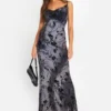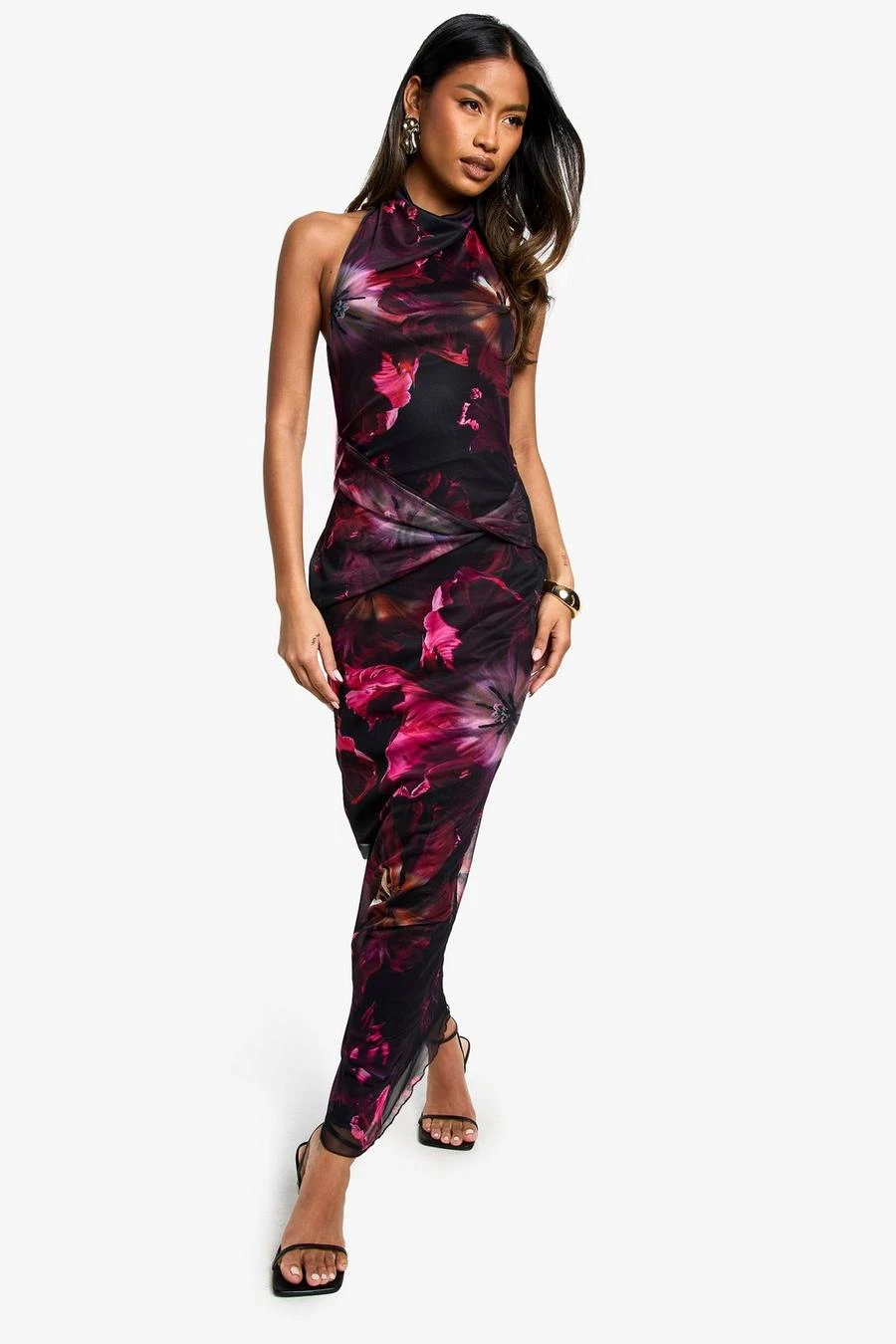 BOOHOO Halter Twist Floral Mesh Maxi Dress