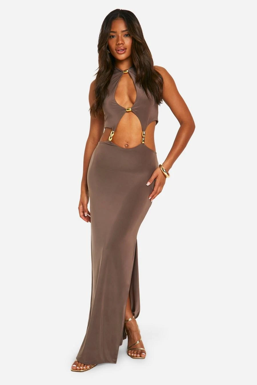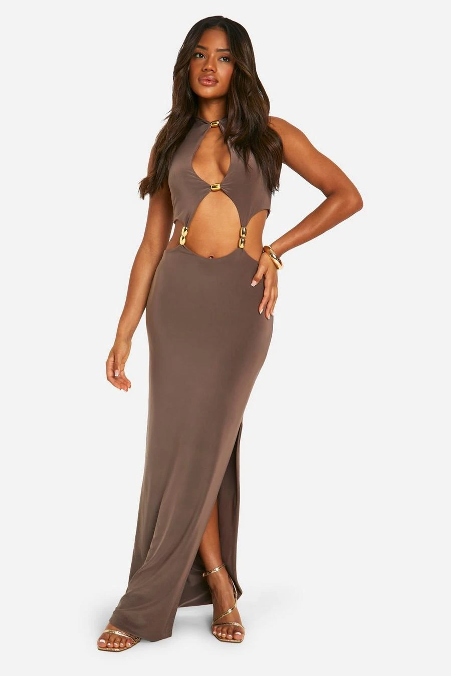BOOHOO Halterneck Cut Out Beaded Maxi Dress