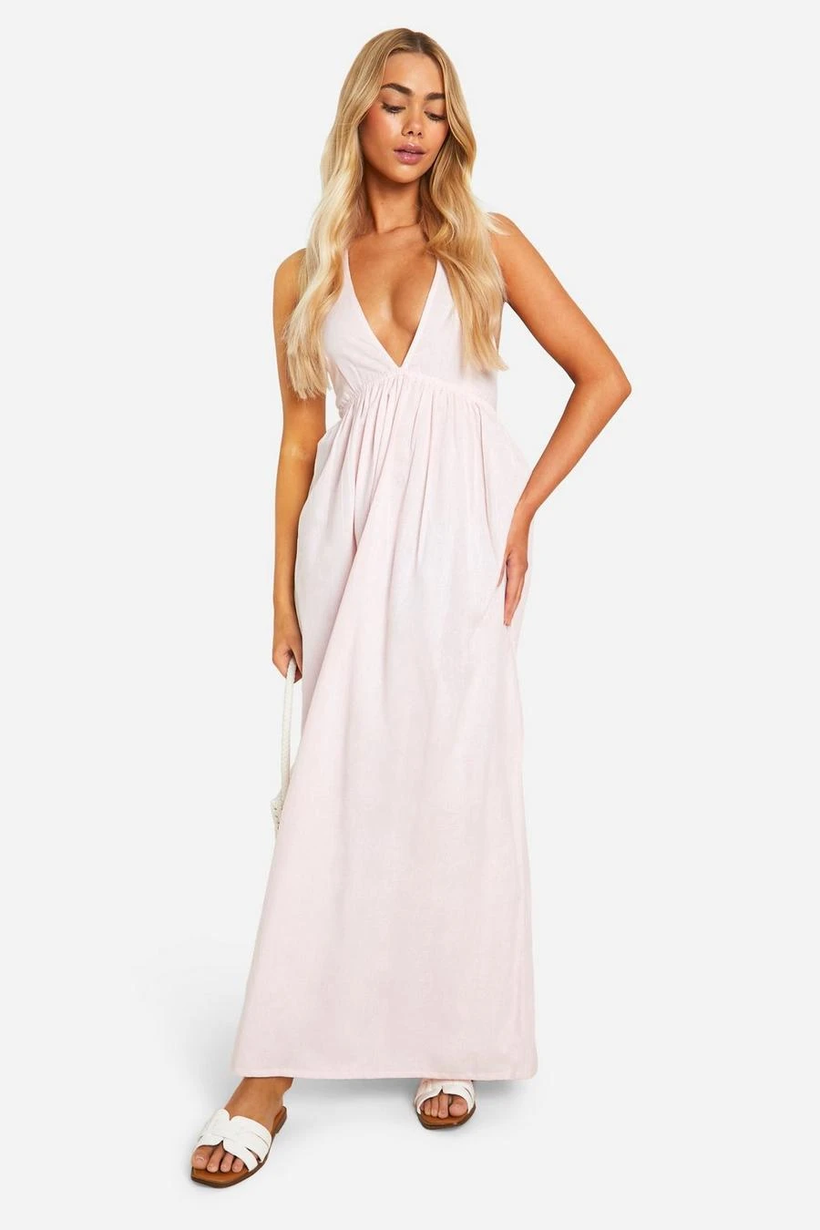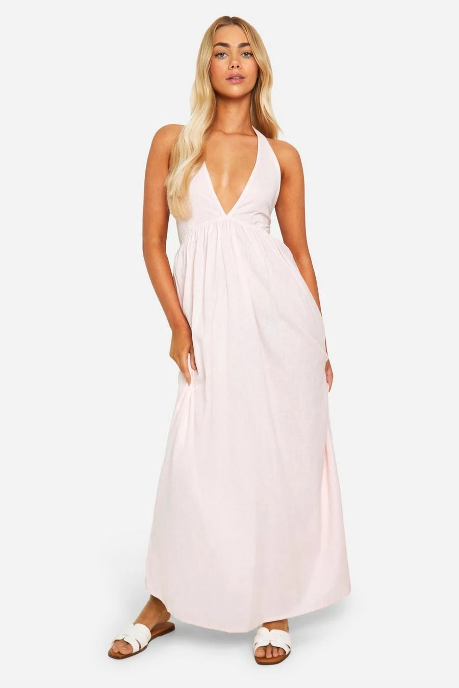 BOOHOO Halterneck Linen Look Double Strap Maxi Dress