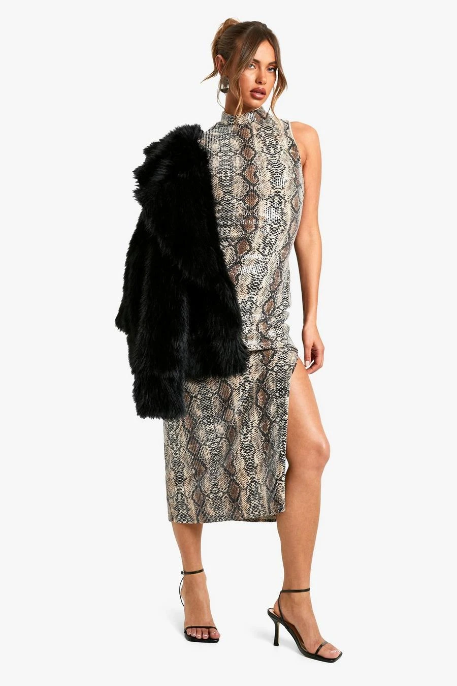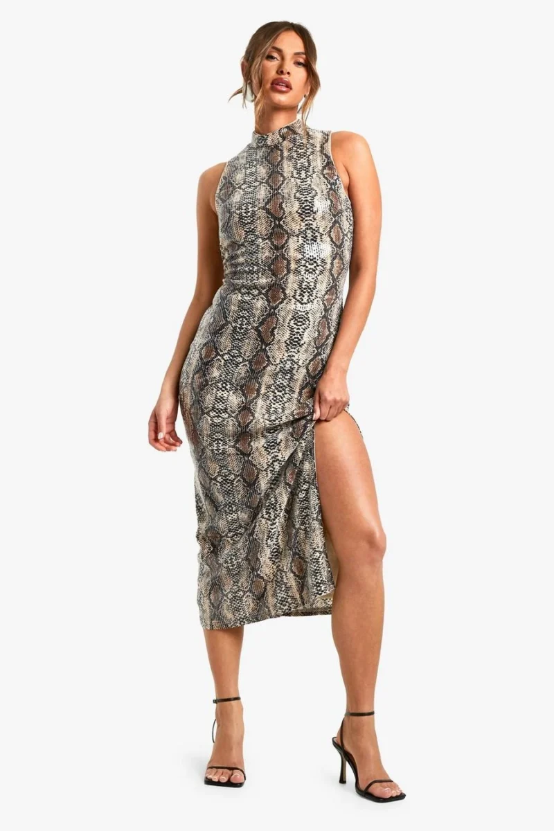 BOOHOO High Neck Snake Sequin Maxi Dress