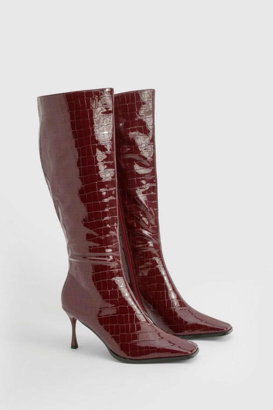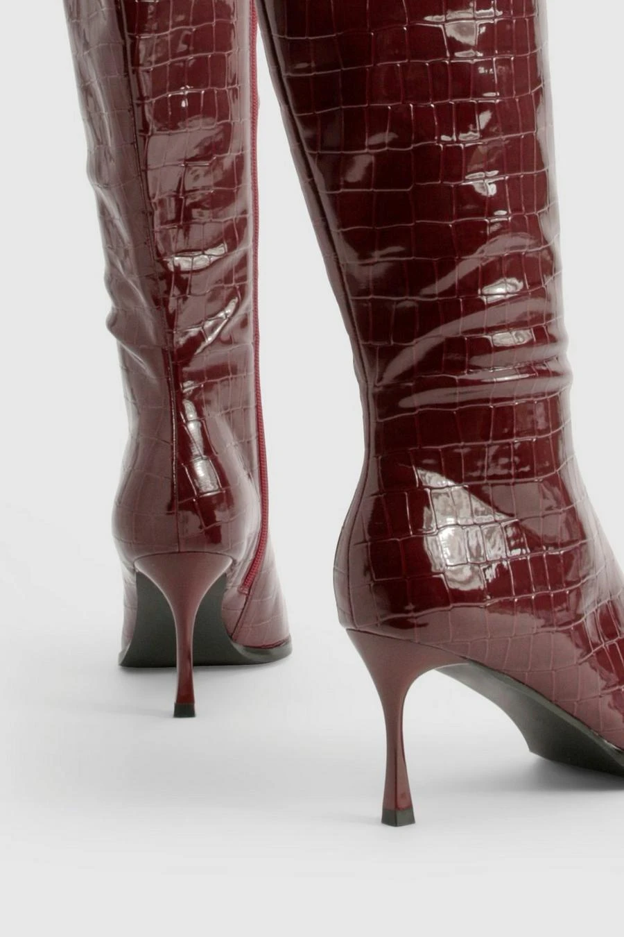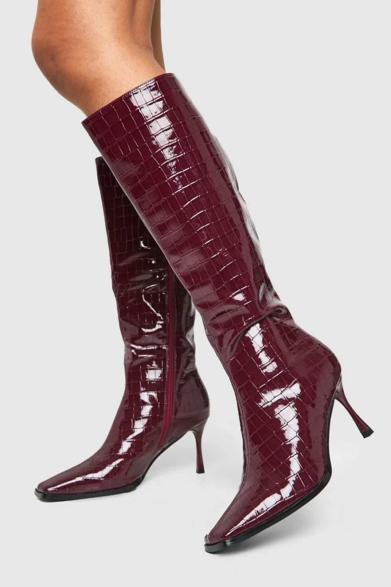 BOOHOO High Shine Croc Pointed Toe Heeled Boots