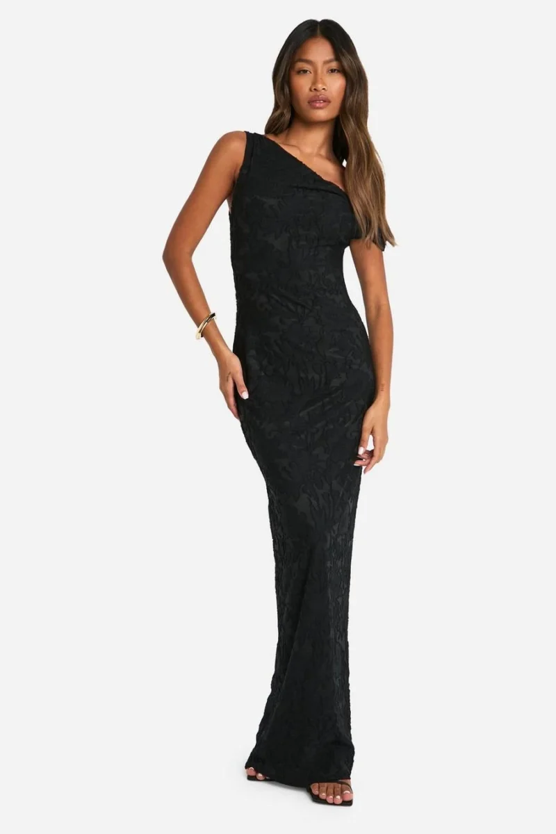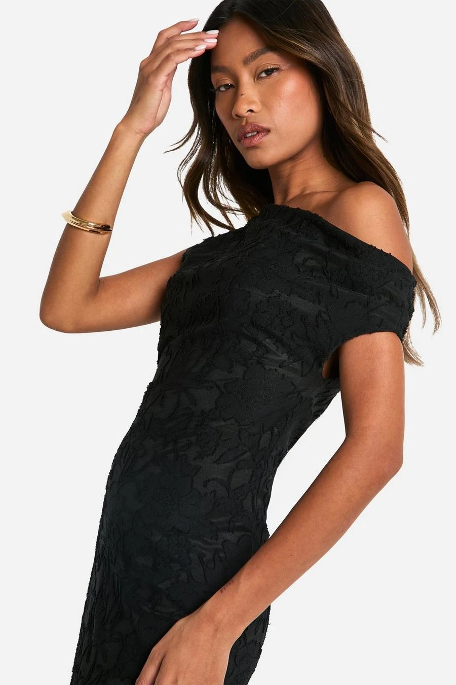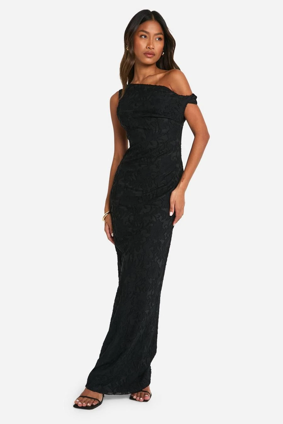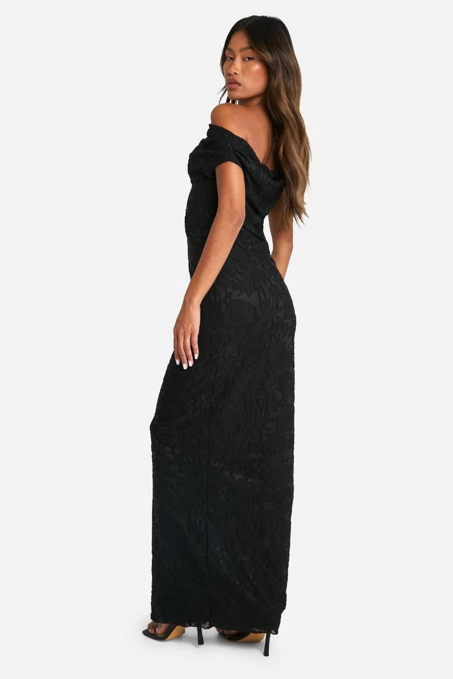BOOHOO Jacquard Floral Twist Strap Maxi Dress
