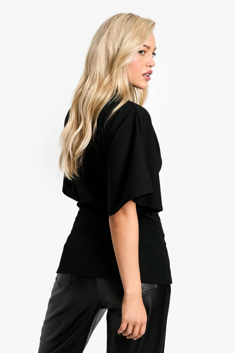 BOOHOO Jersey Crepe High Neck Flared Sleeve Blouse