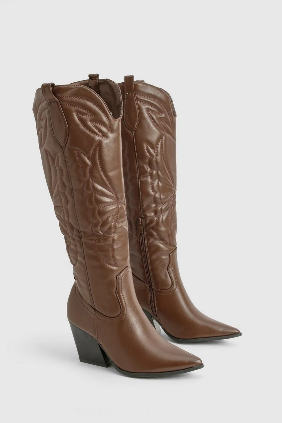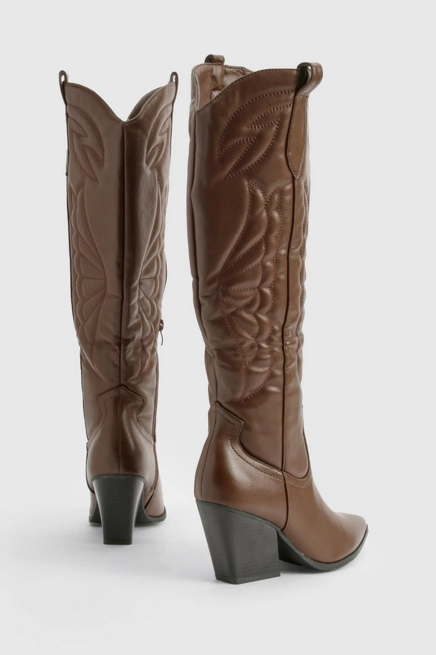 BOOHOO Knee High Embroidered Western Boots