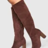 BOOHOO Knee High Heeled Faux Suede Western Cowboy Boots