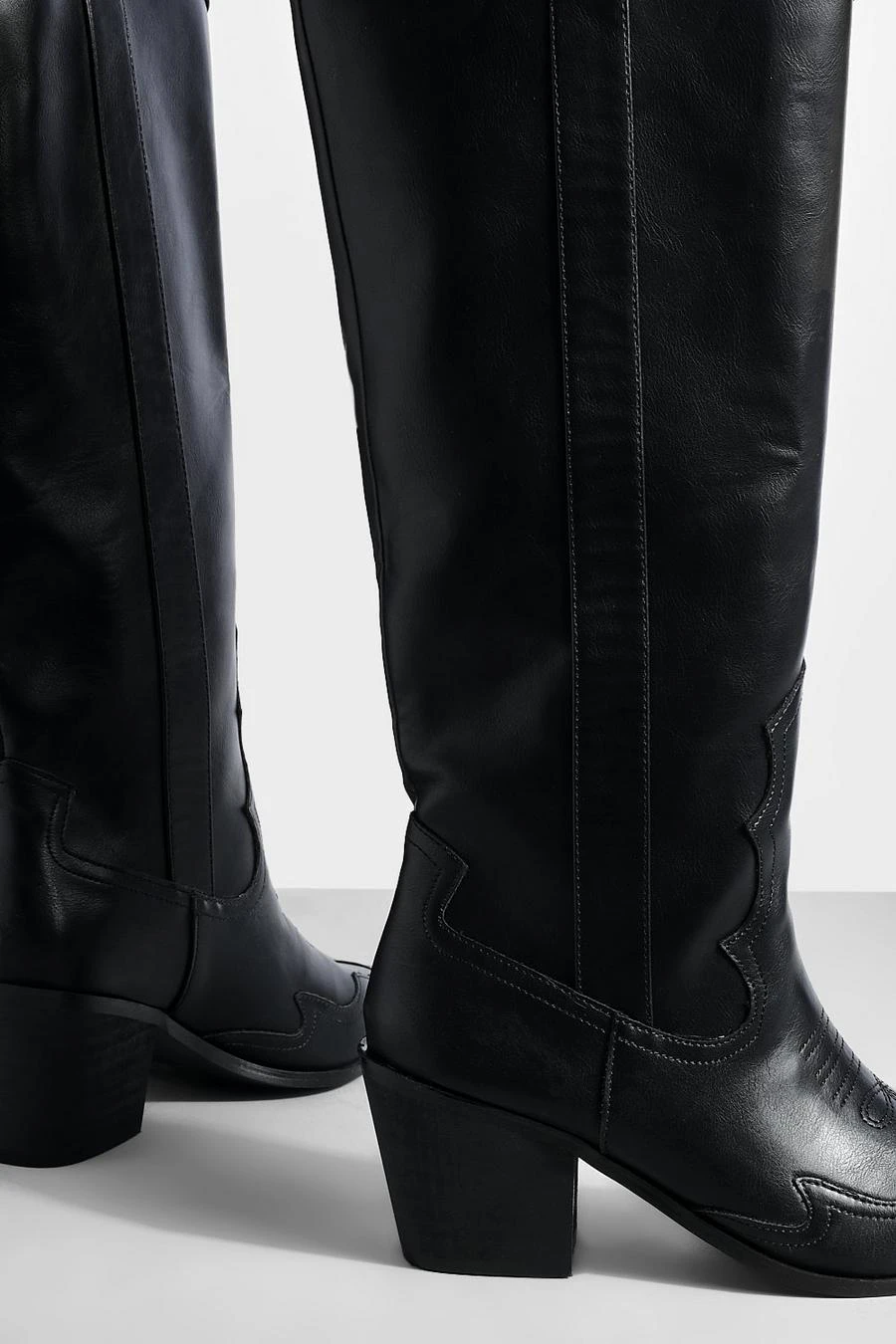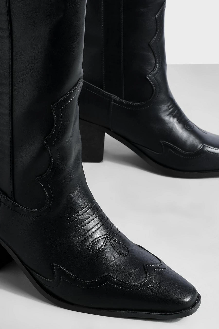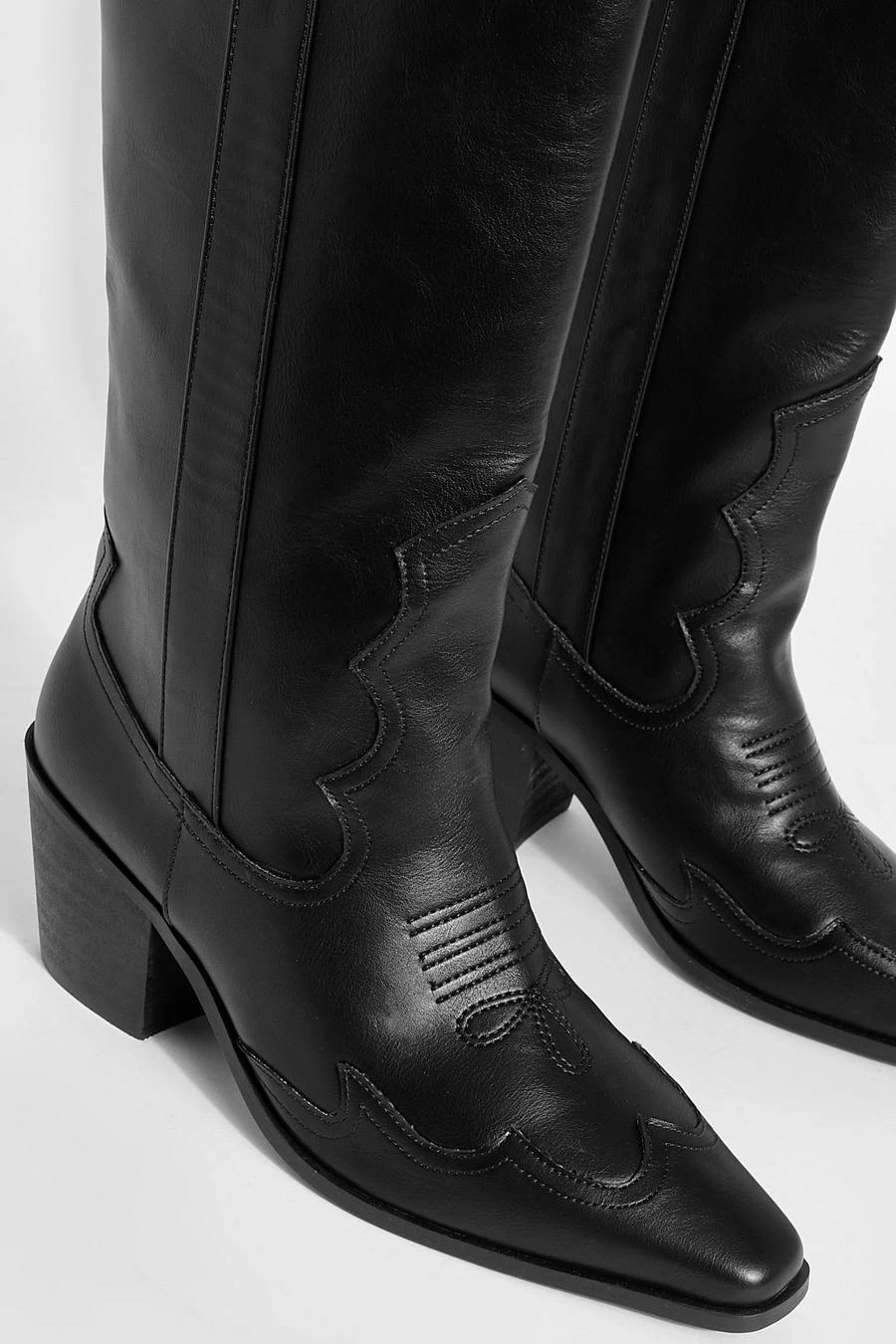 BOOHOO Knee High Pu Heeled Western Cowboy Boots
