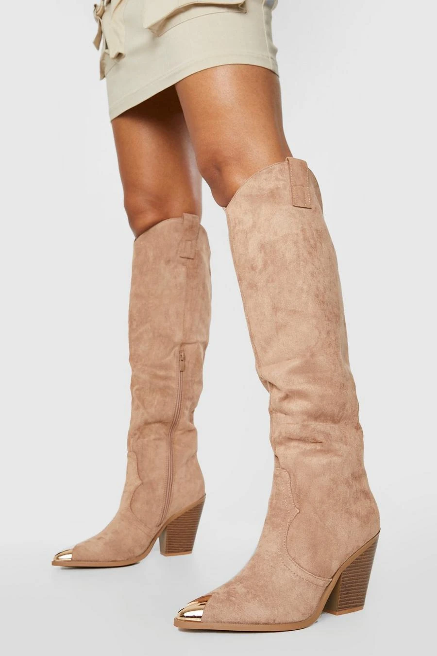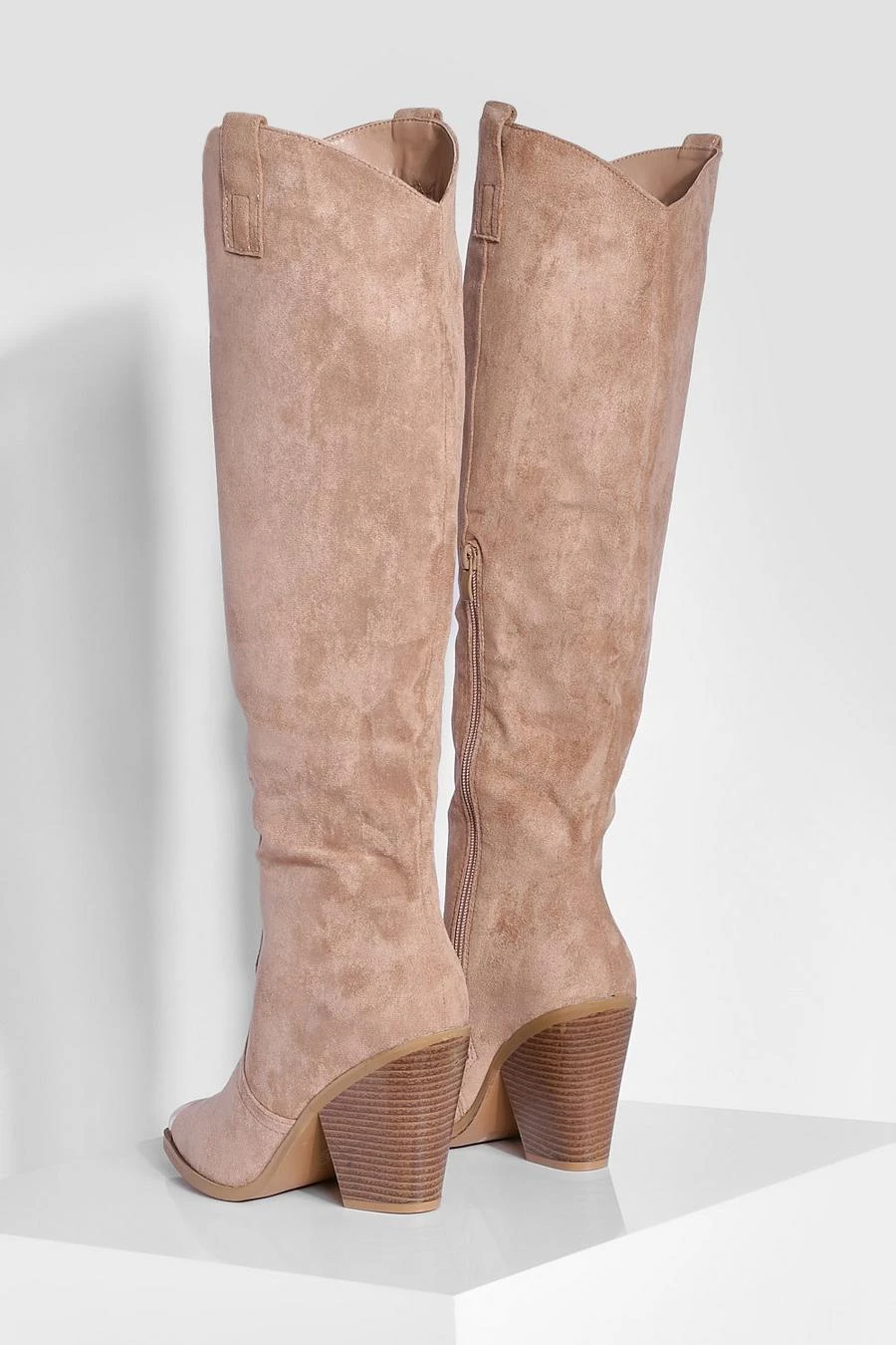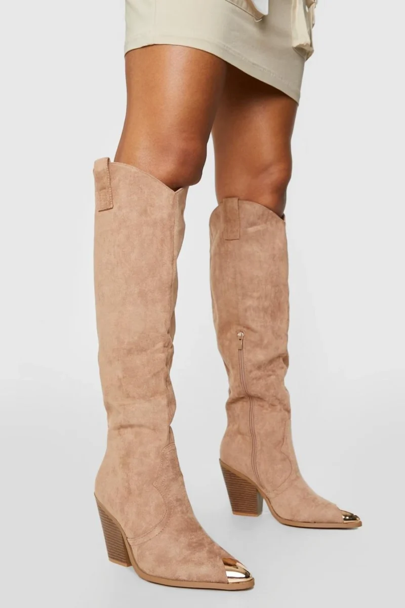 BOOHOO Knee High Toe Cap Pull On Western Cowboy Boots