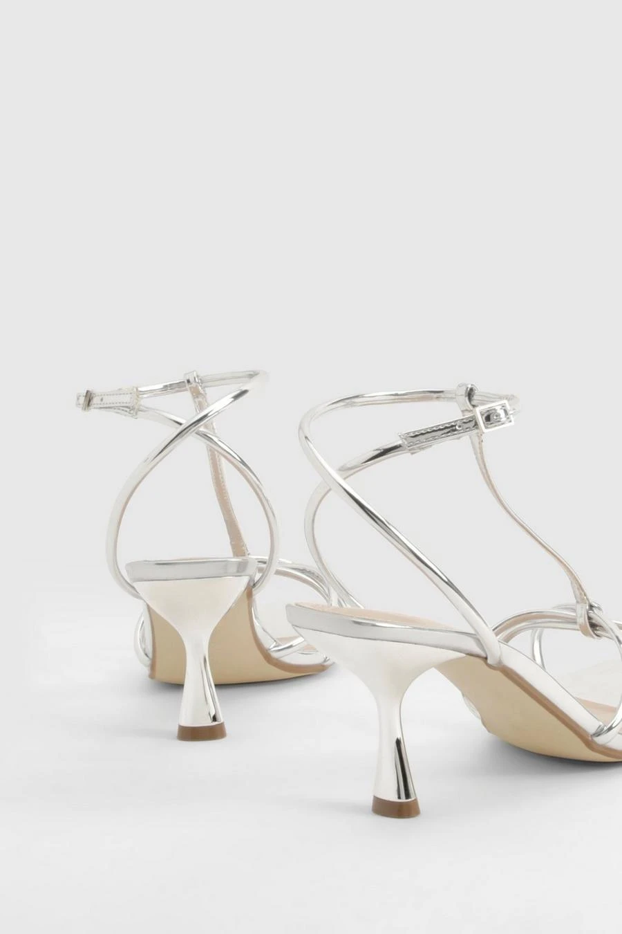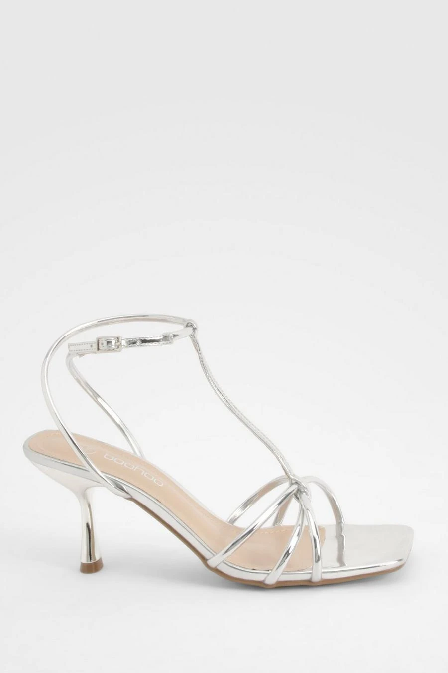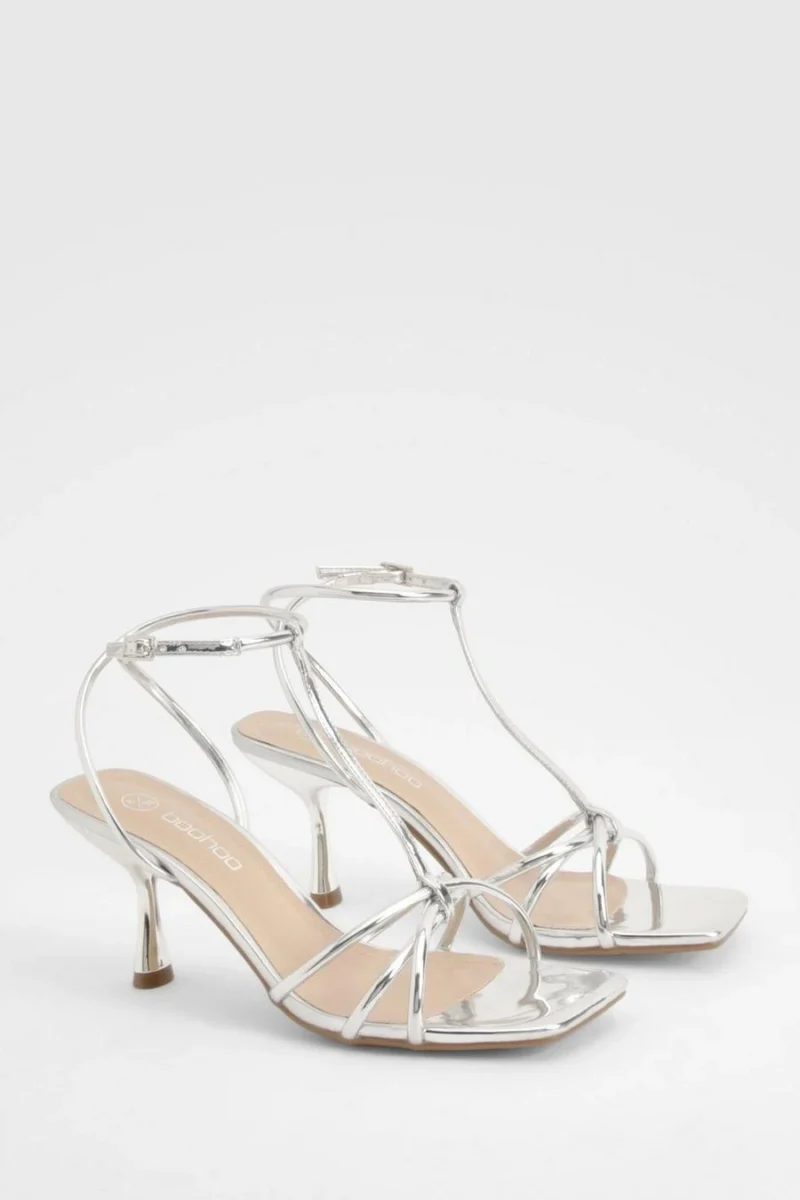 BOOHOO Knot Detail T Bar Mid Height Sandals