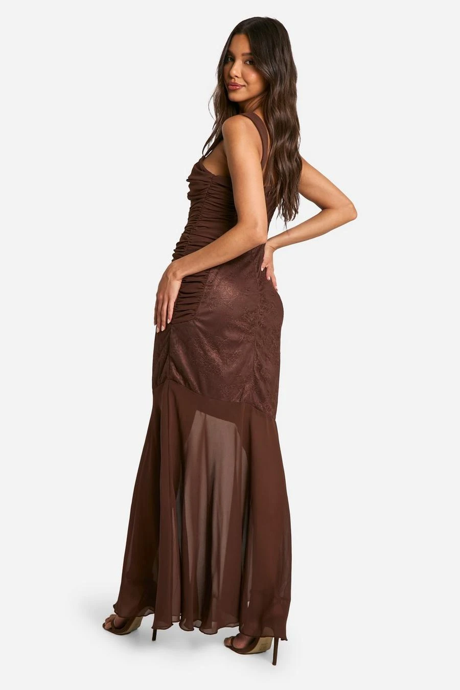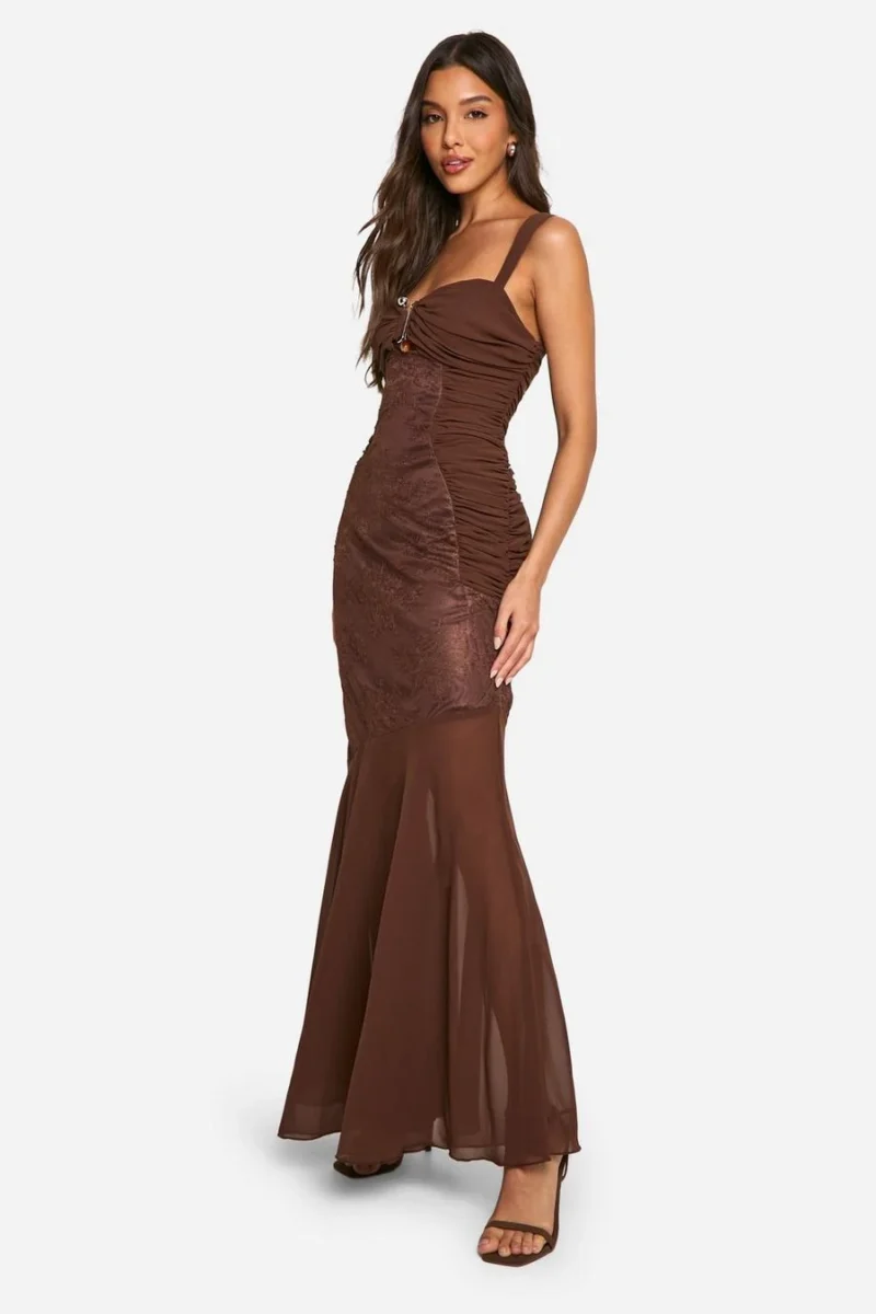 BOOHOO Lace Chiffon Mix Ruched Maxi Dress
