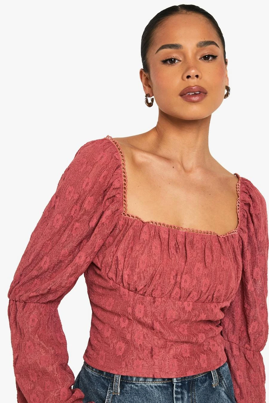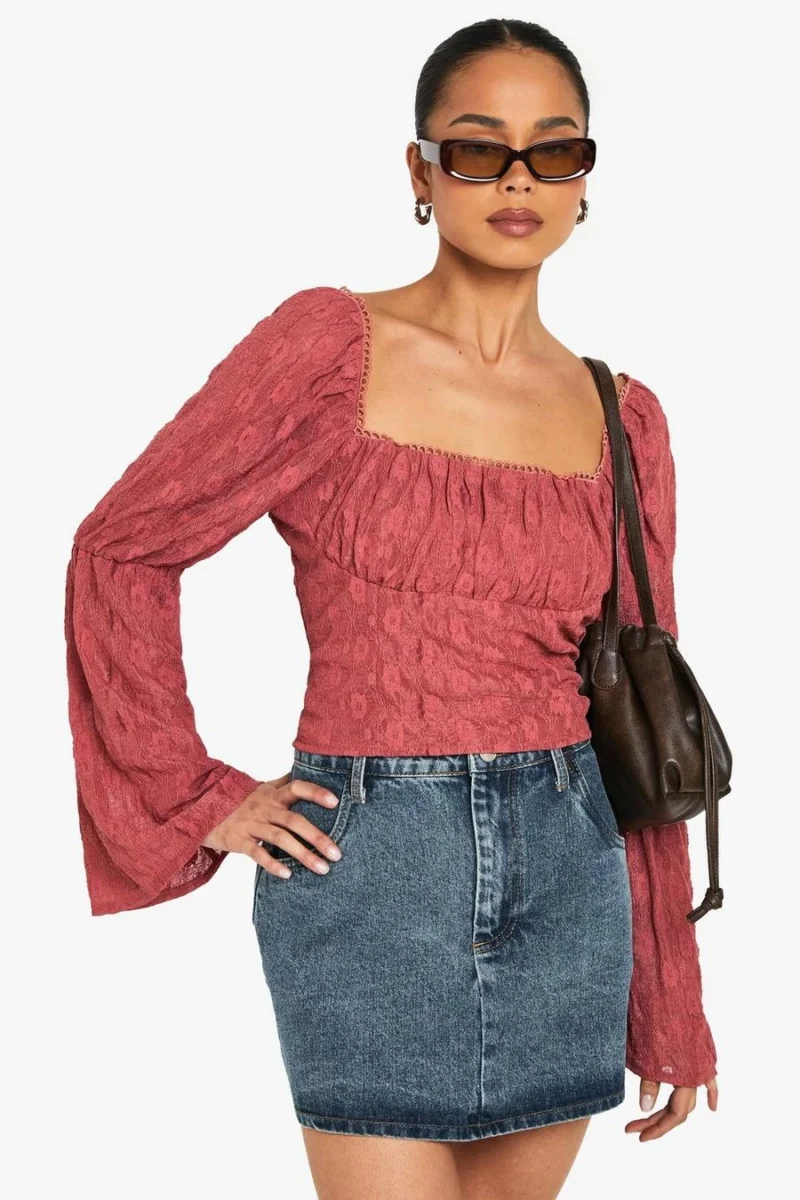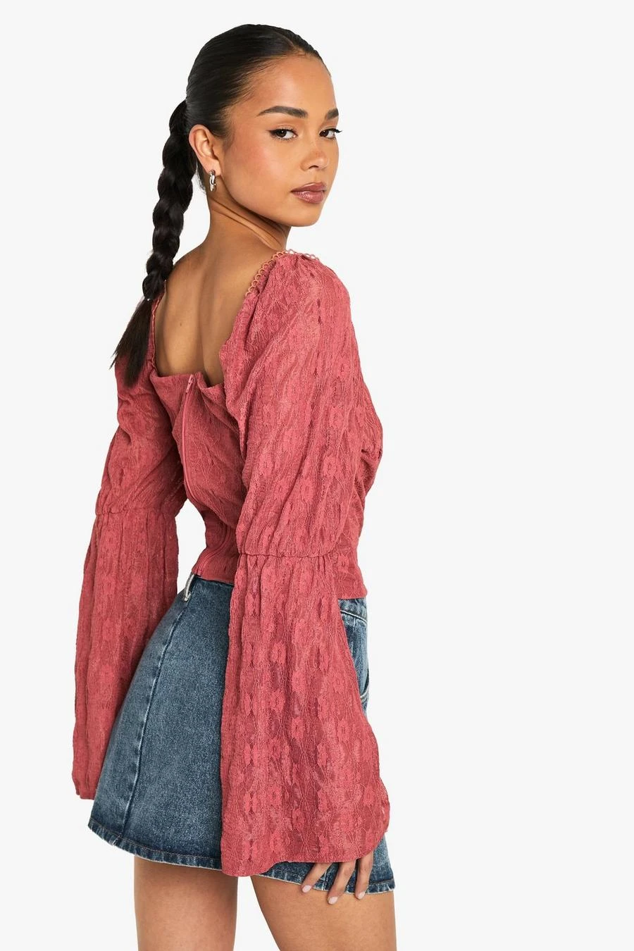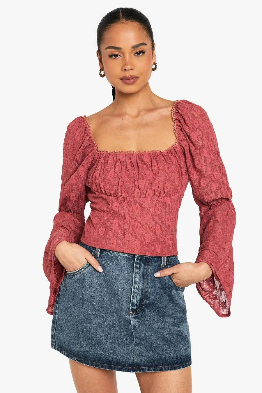 BOOHOO Lace Flare Sleeve Milkmaid Top