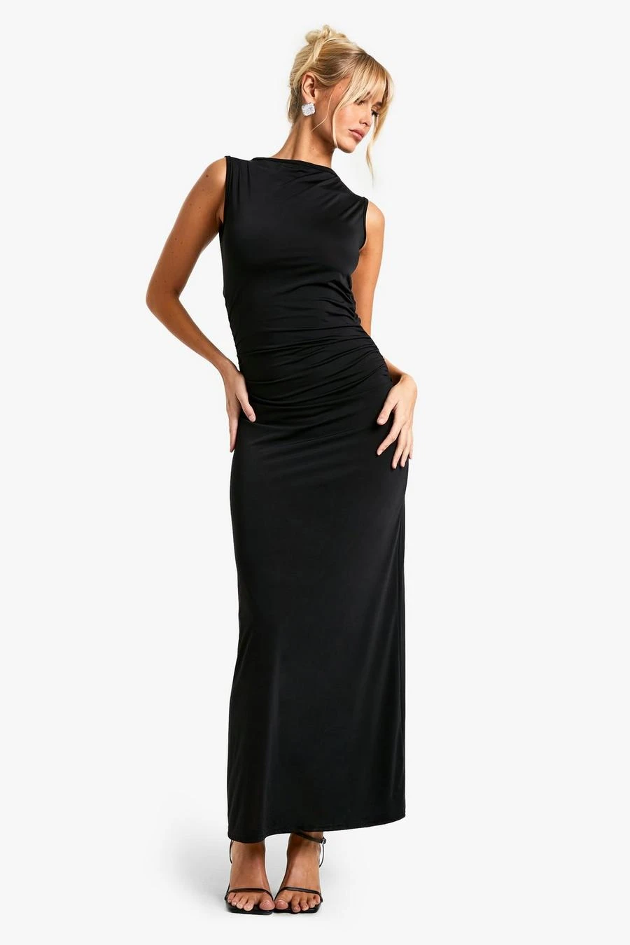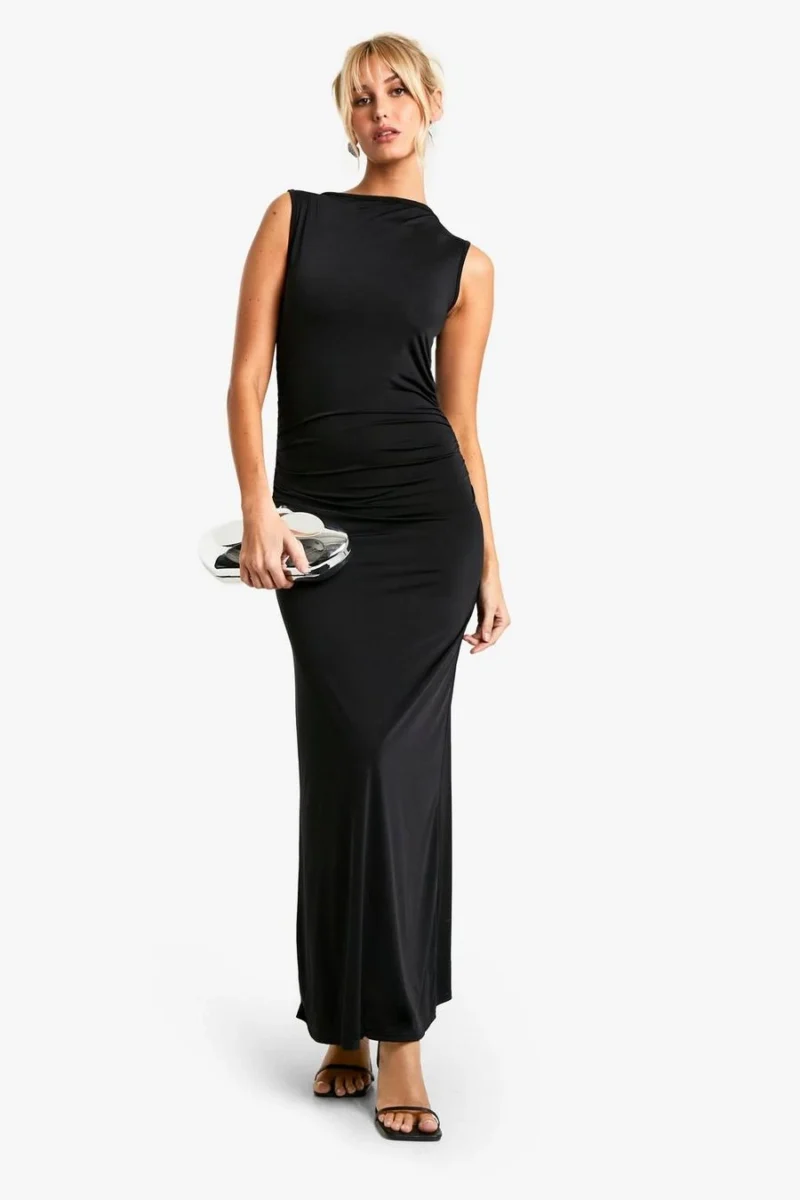 BOOHOO Lace Insert Cowl Column Maxi Dress