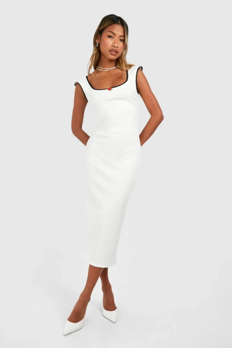 BOOHOO Lace Rose Trim Cap Sleeve Midaxii Dress