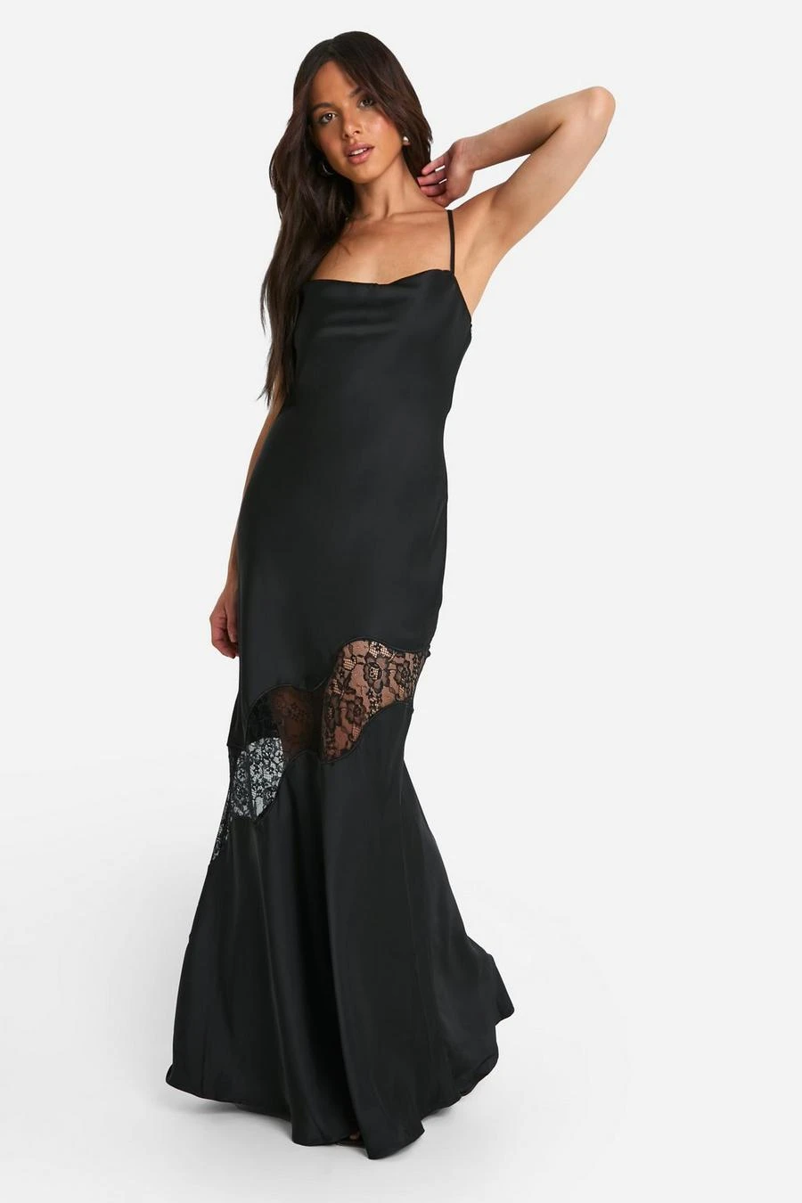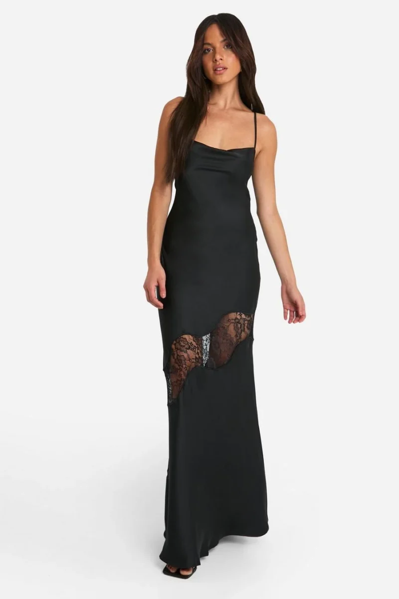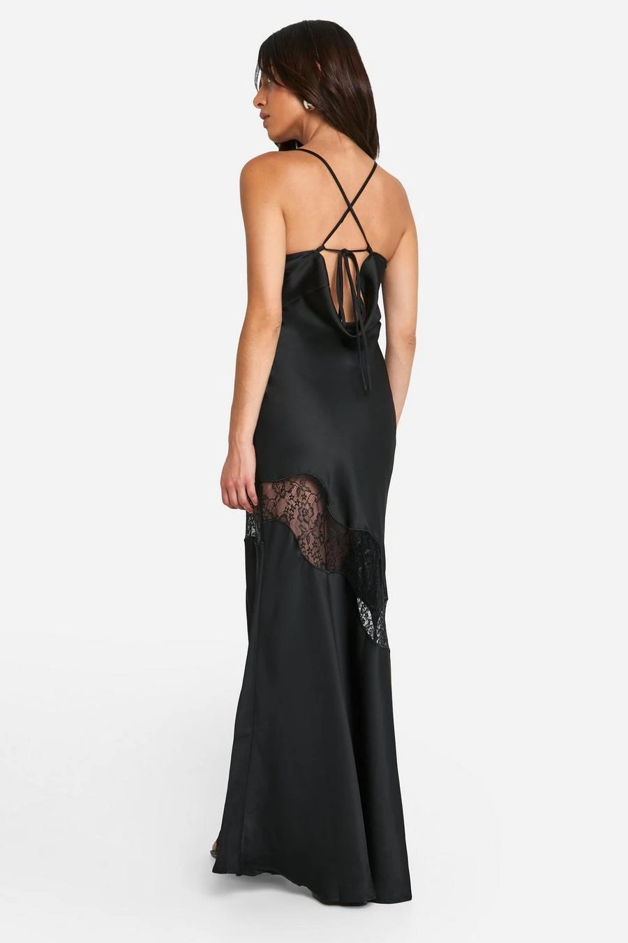 BOOHOO Lace Satin Tie Back Maxi Dress
