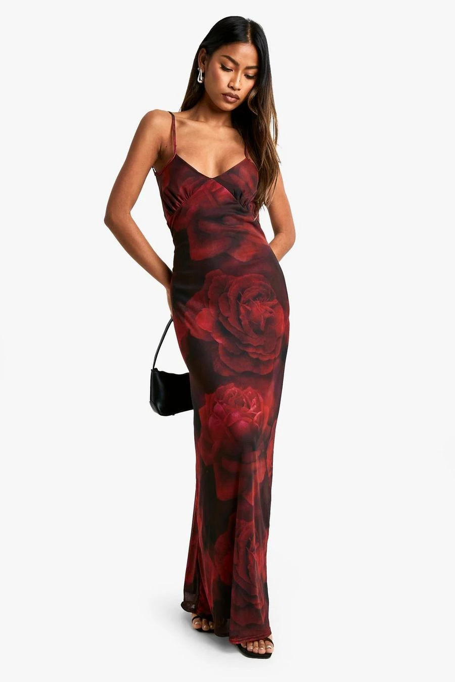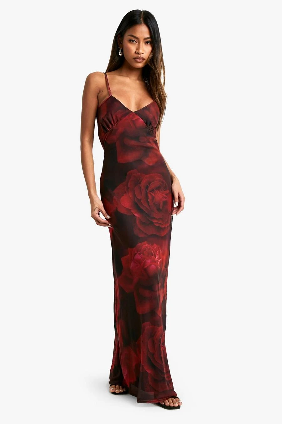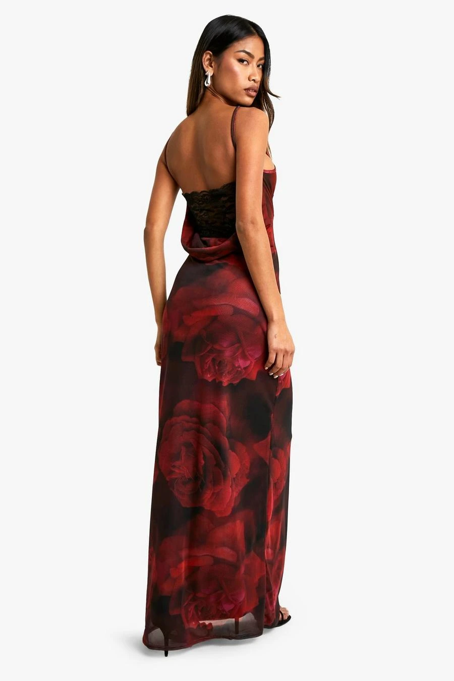 BOOHOO Lace Trim Floral Mesh Maxi Dress