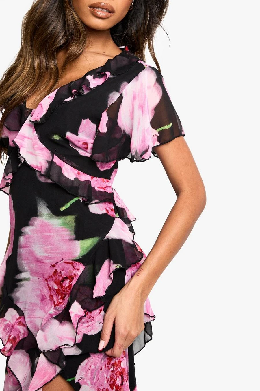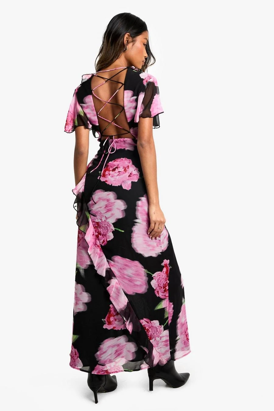 BOOHOO Large Floral V Neck Split Maxi Dress
