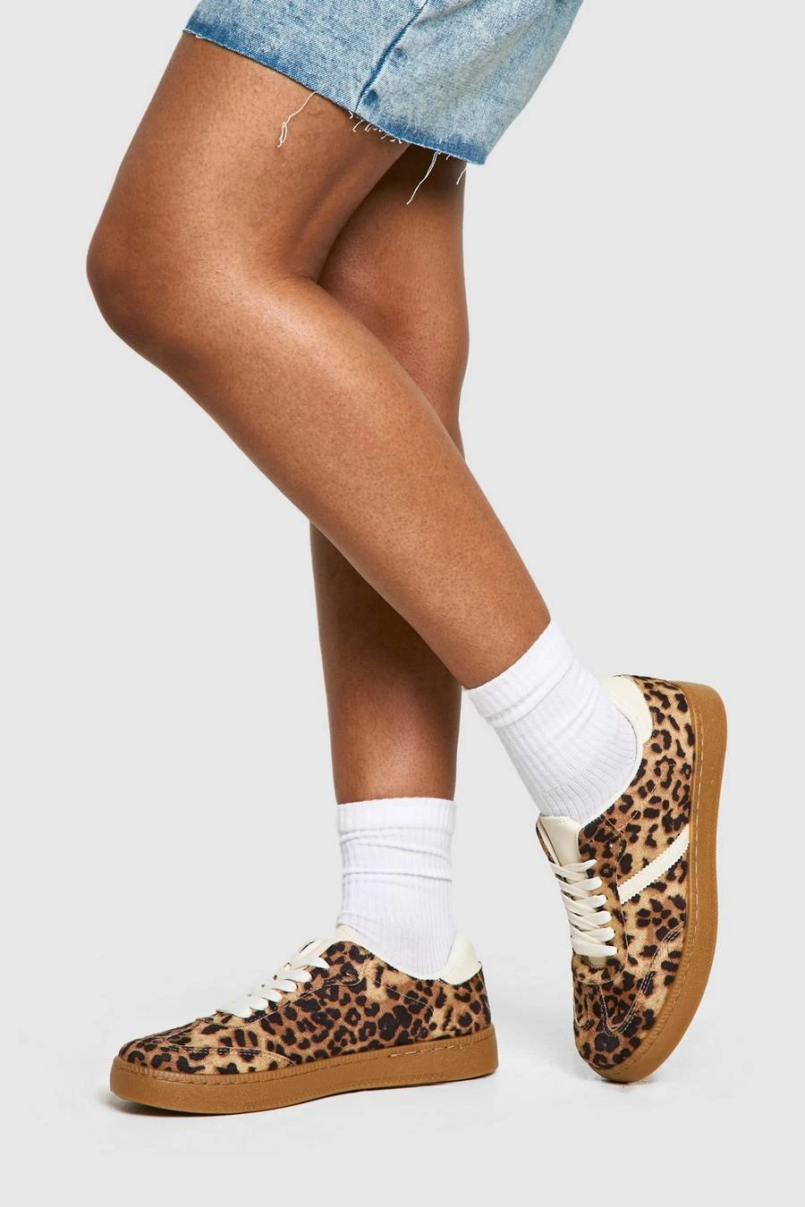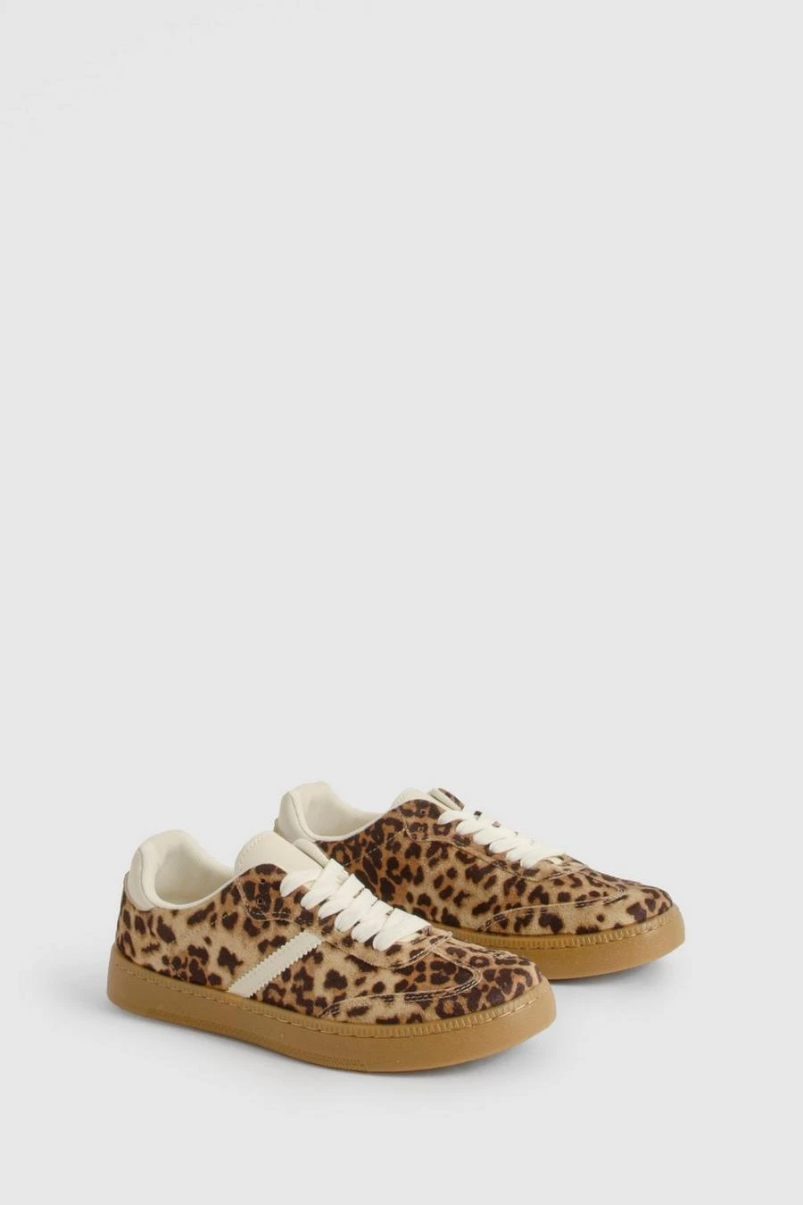 BOOHOO Leopard Gum Sole Lace Up Trainers