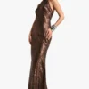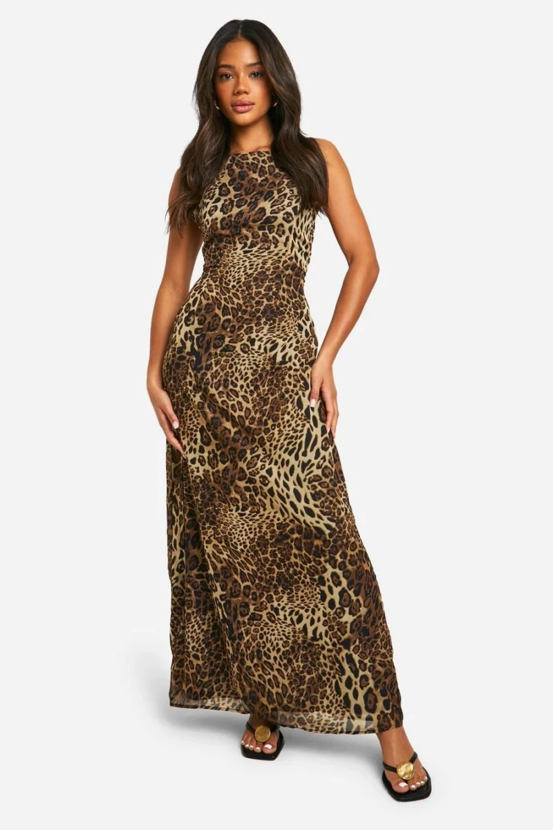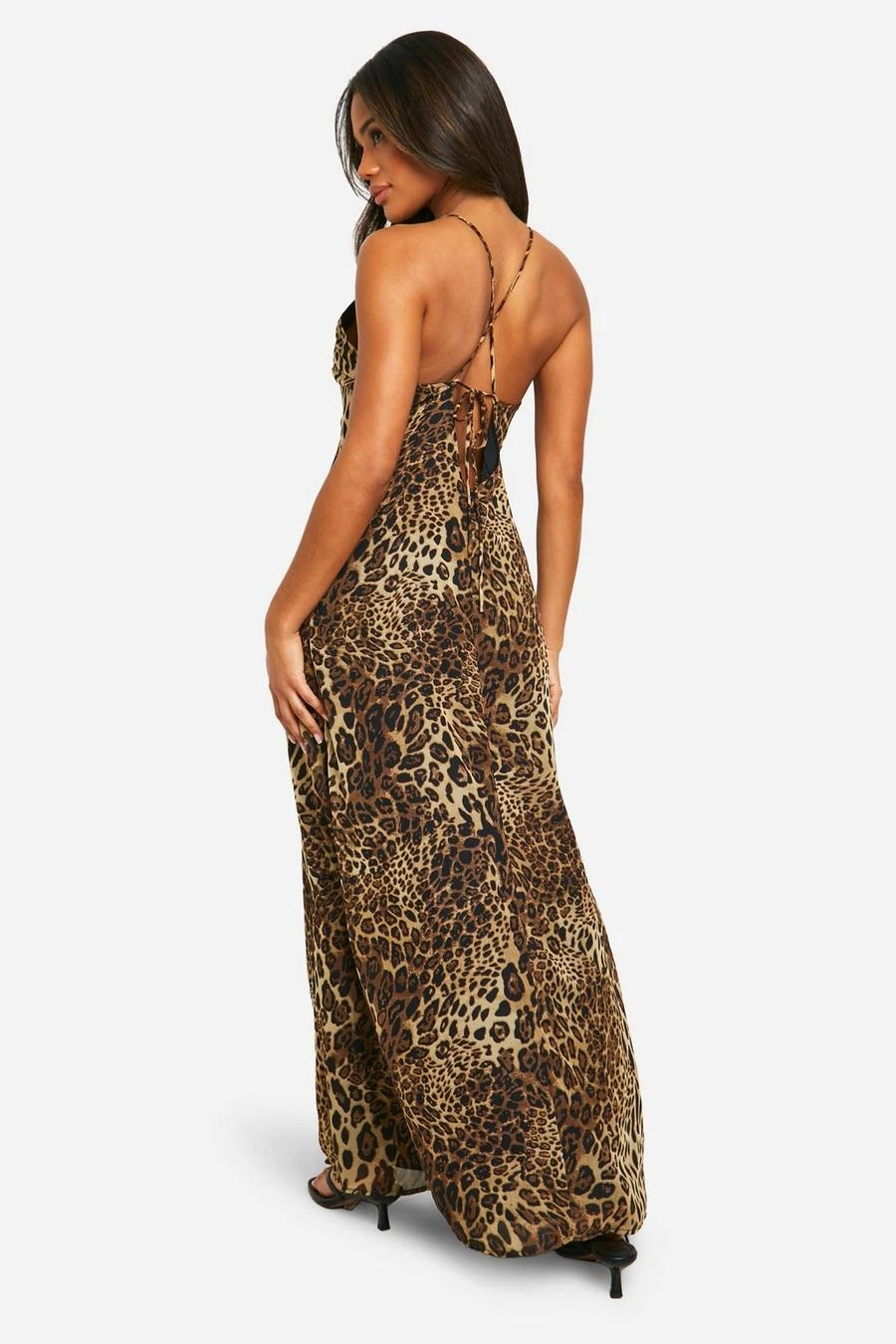 BOOHOO Leopard Low Back Strappy Maxi Dress