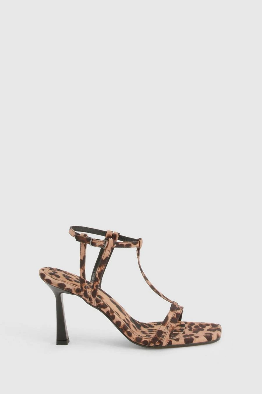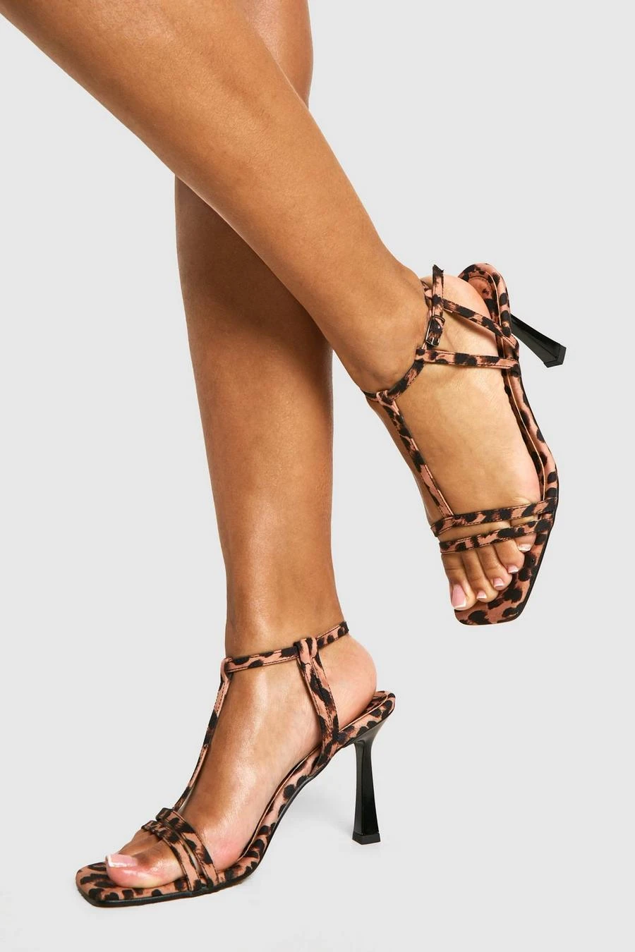 BOOHOO Leopard Neoprene T Bar Strappy Square Toe Heels