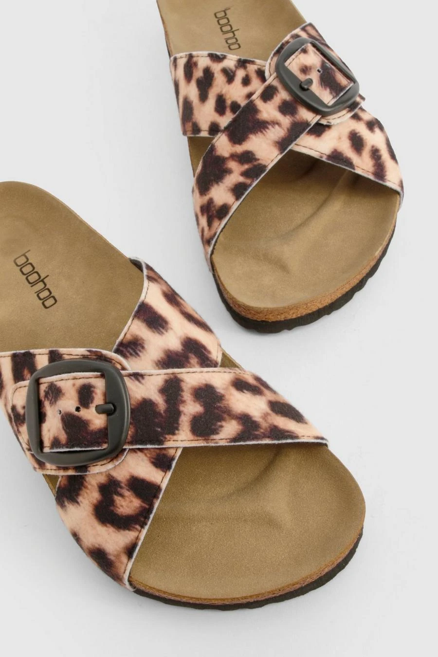 BOOHOO Leopard Print Cross Strap Footbed Sandals