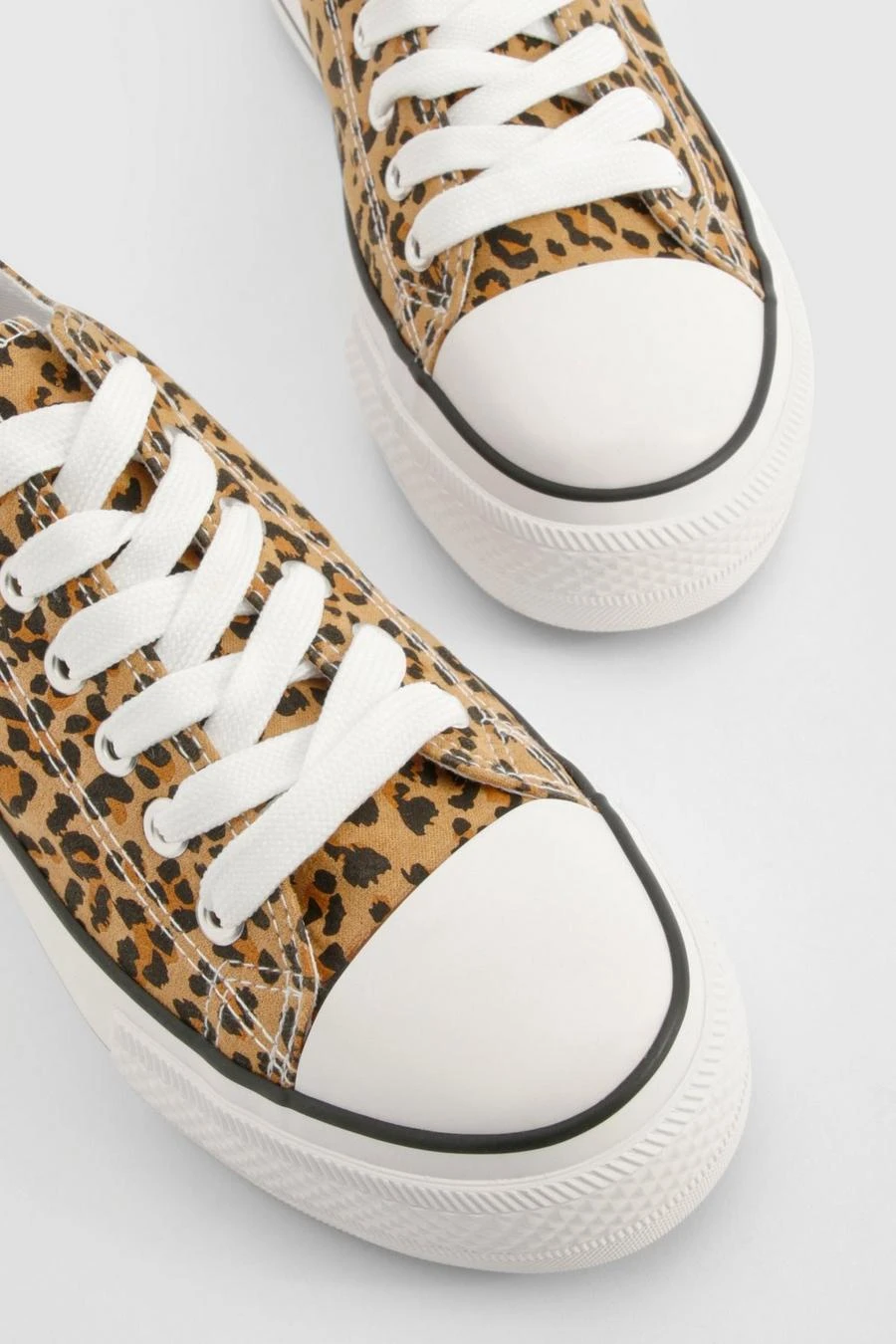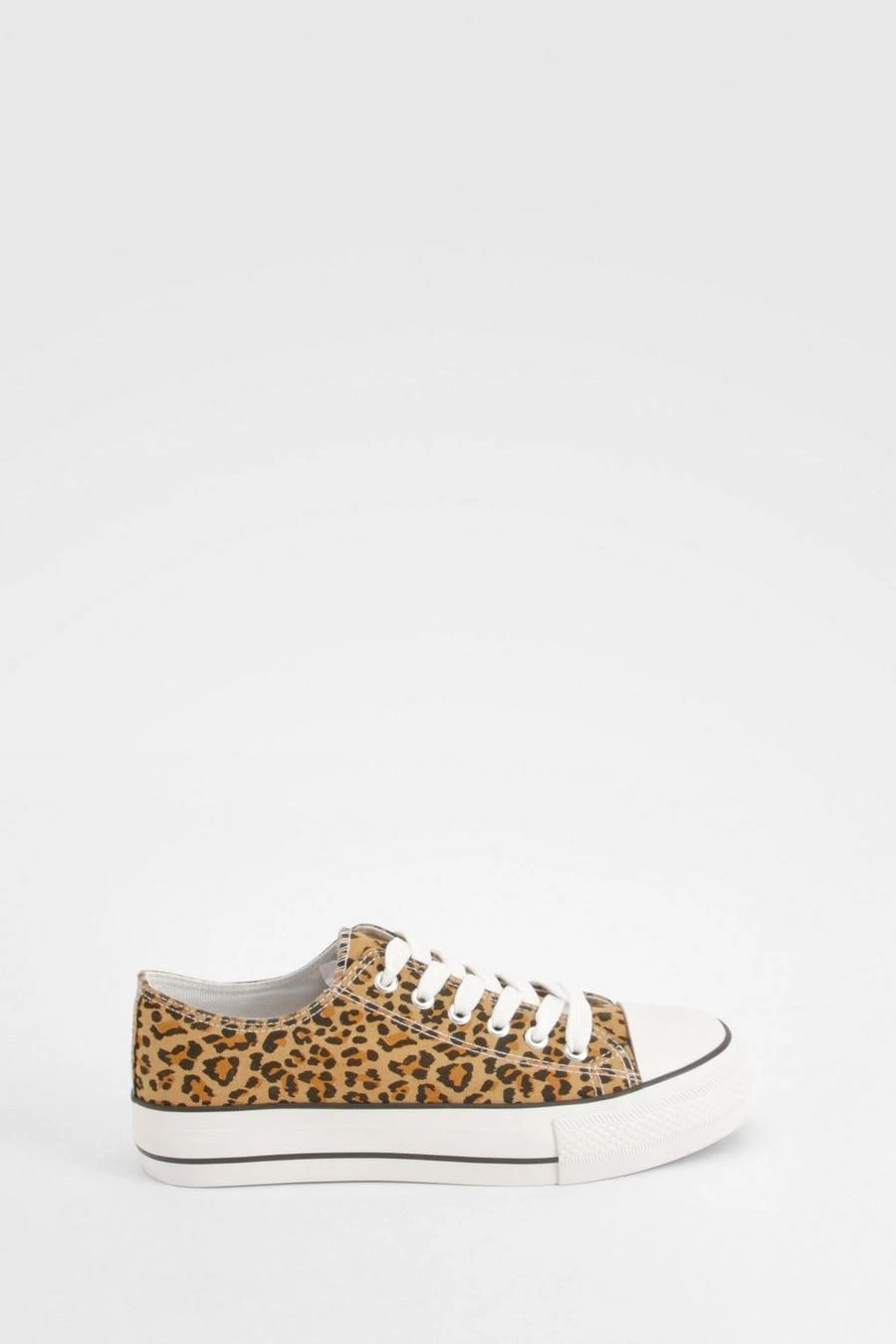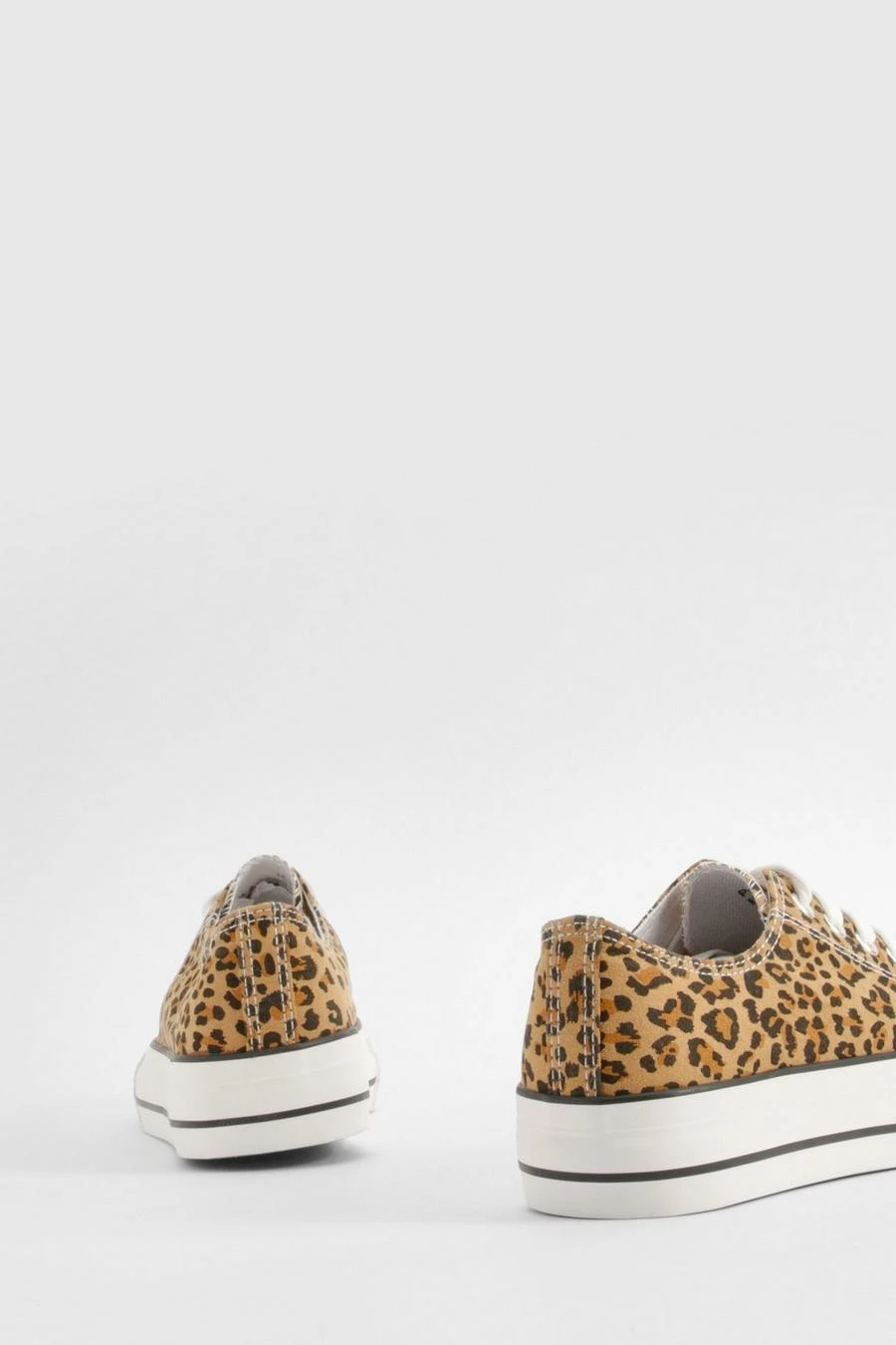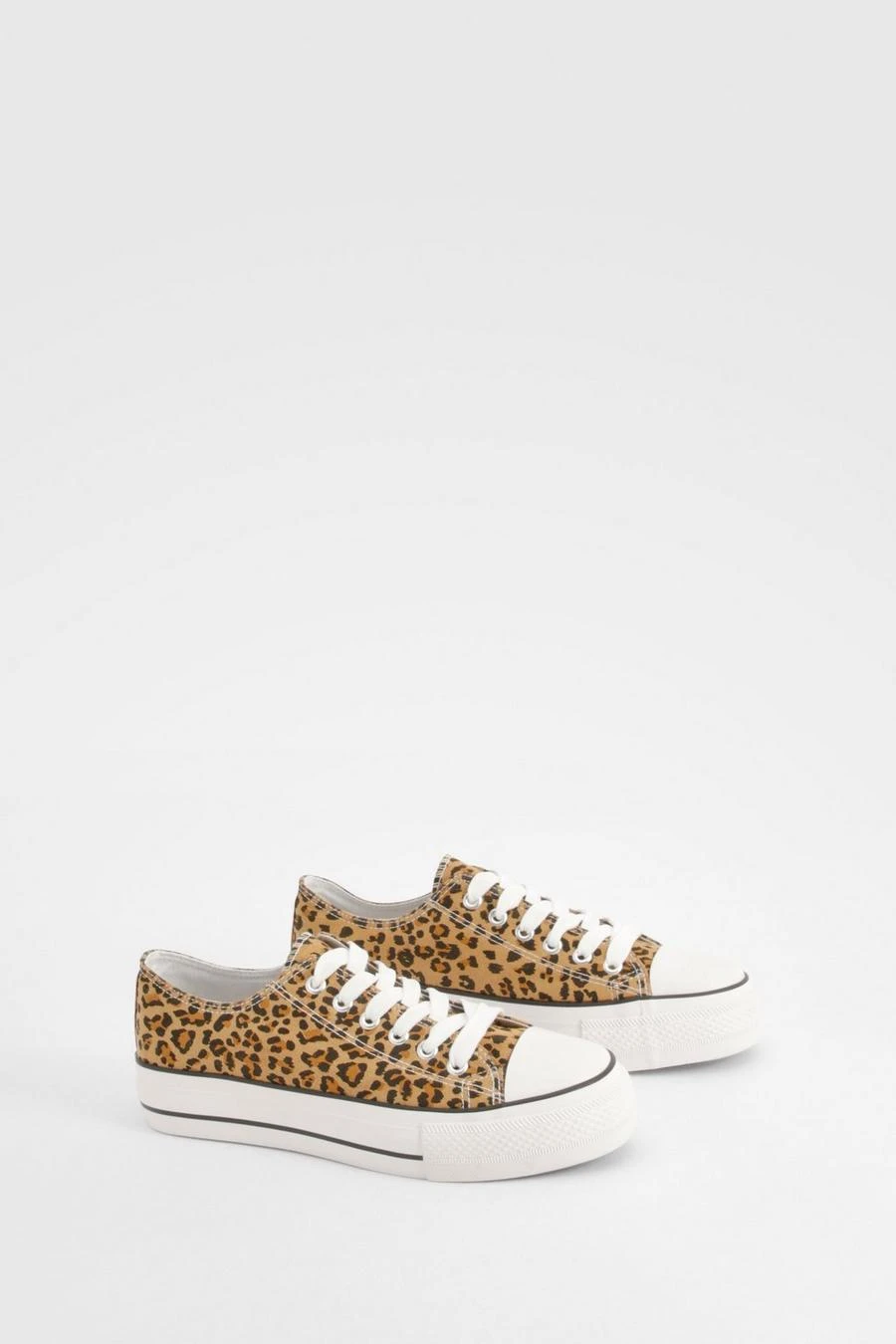 BOOHOO Leopard Print Platform Low Top Lace Up Trainers