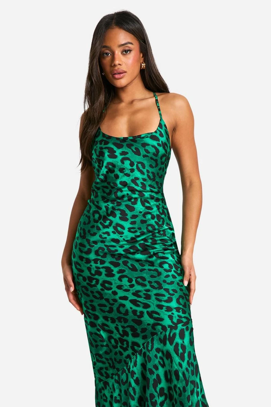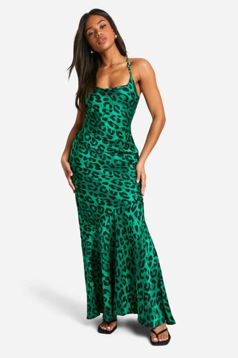 BOOHOO Leopard Print Tie Back Ruffle Hem Maxi Dress