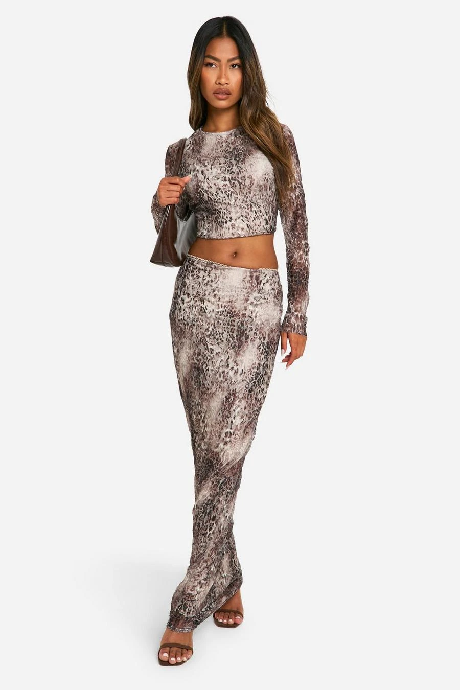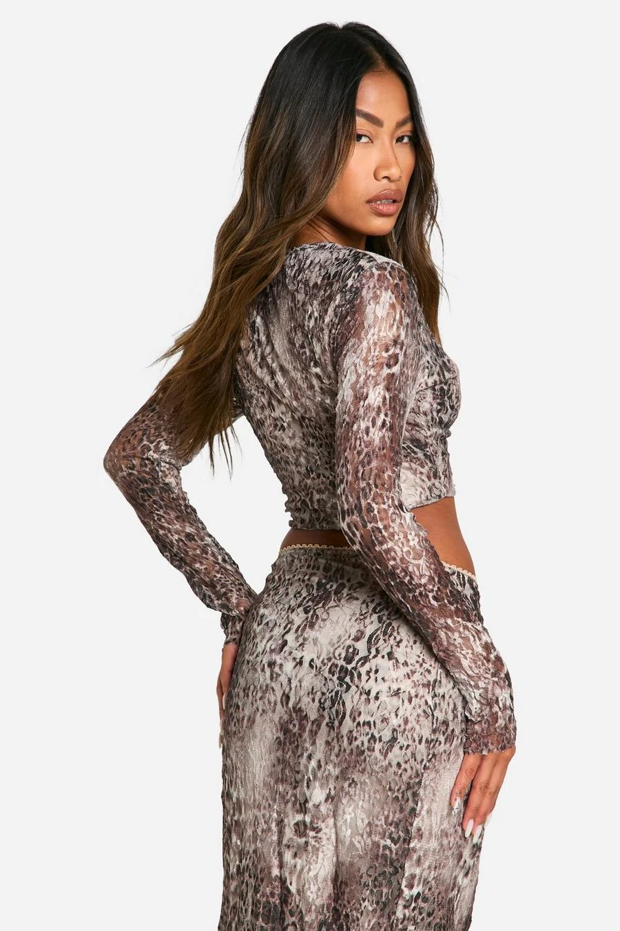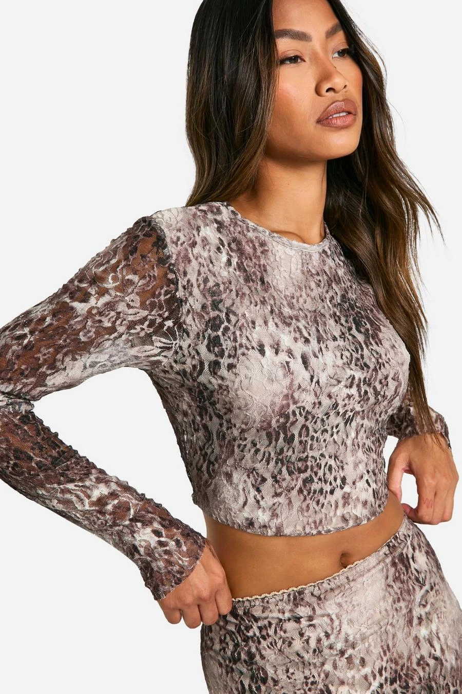 BOOHOO Leopard Printed Lace Long Sleeve Top