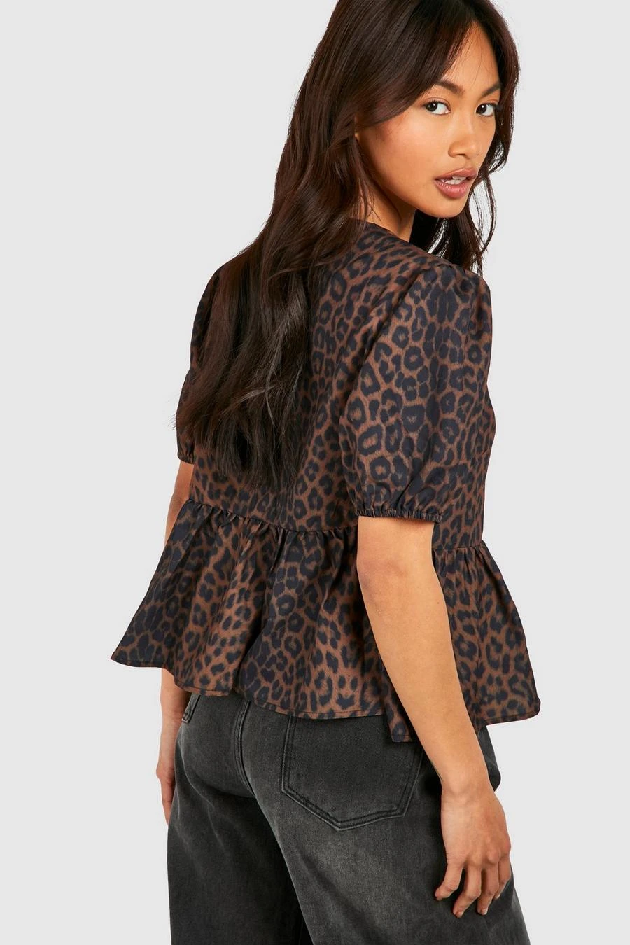 BOOHOO Leopard Puff Sleeve Bow Tie Top