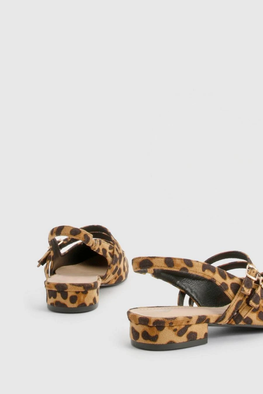 BOOHOO Leopard Slingback Flats With Double Strap