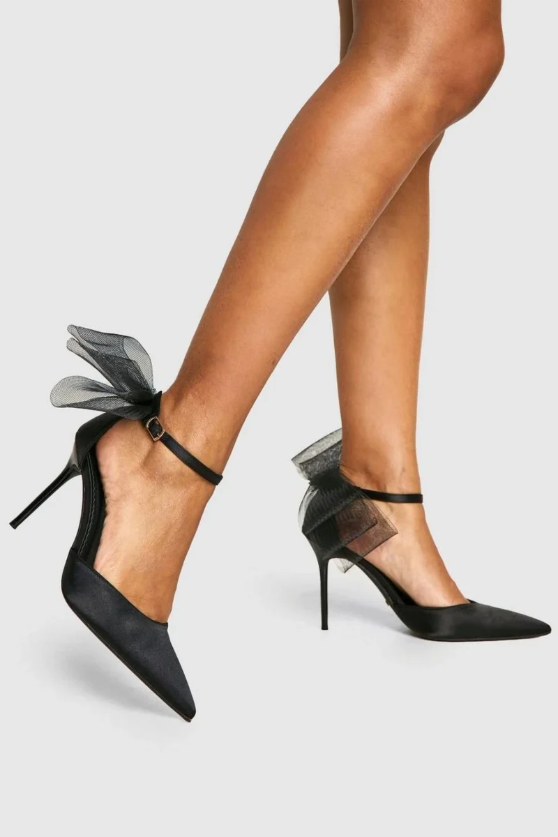 BOOHOO Limited Edition Organza Bow Satin Court Heels
