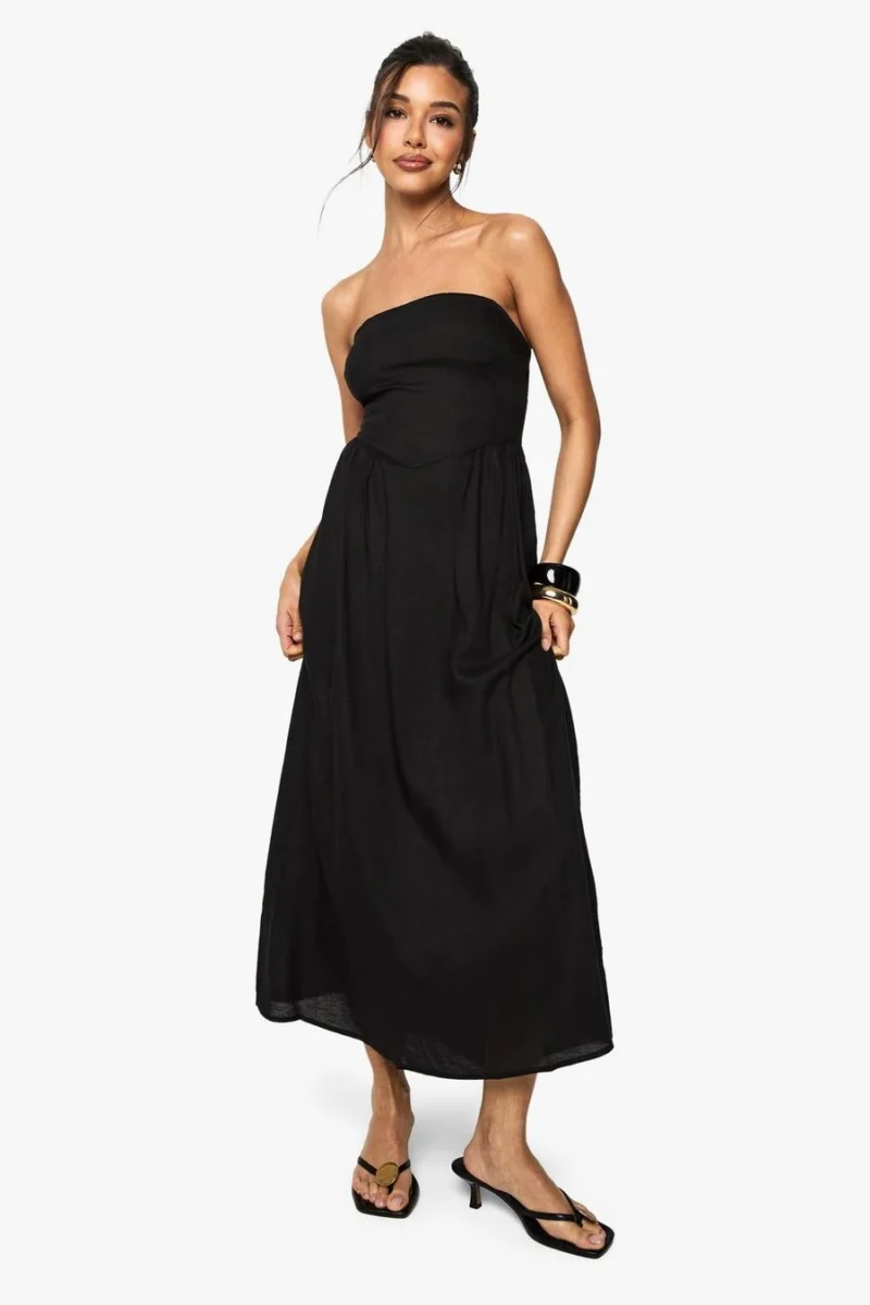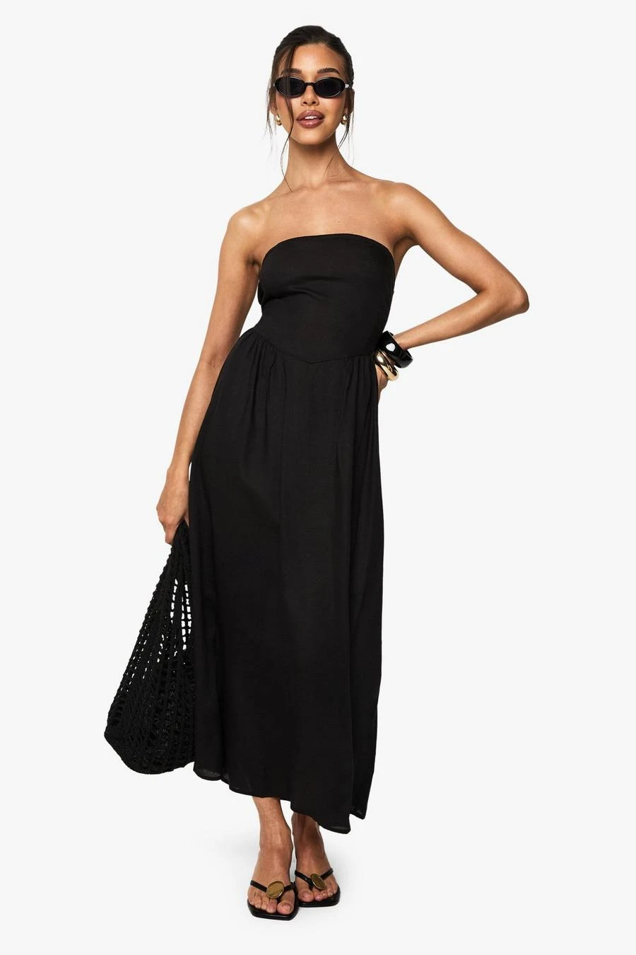 BOOHOO Linen Look Bandeau Midaxi Dress