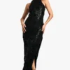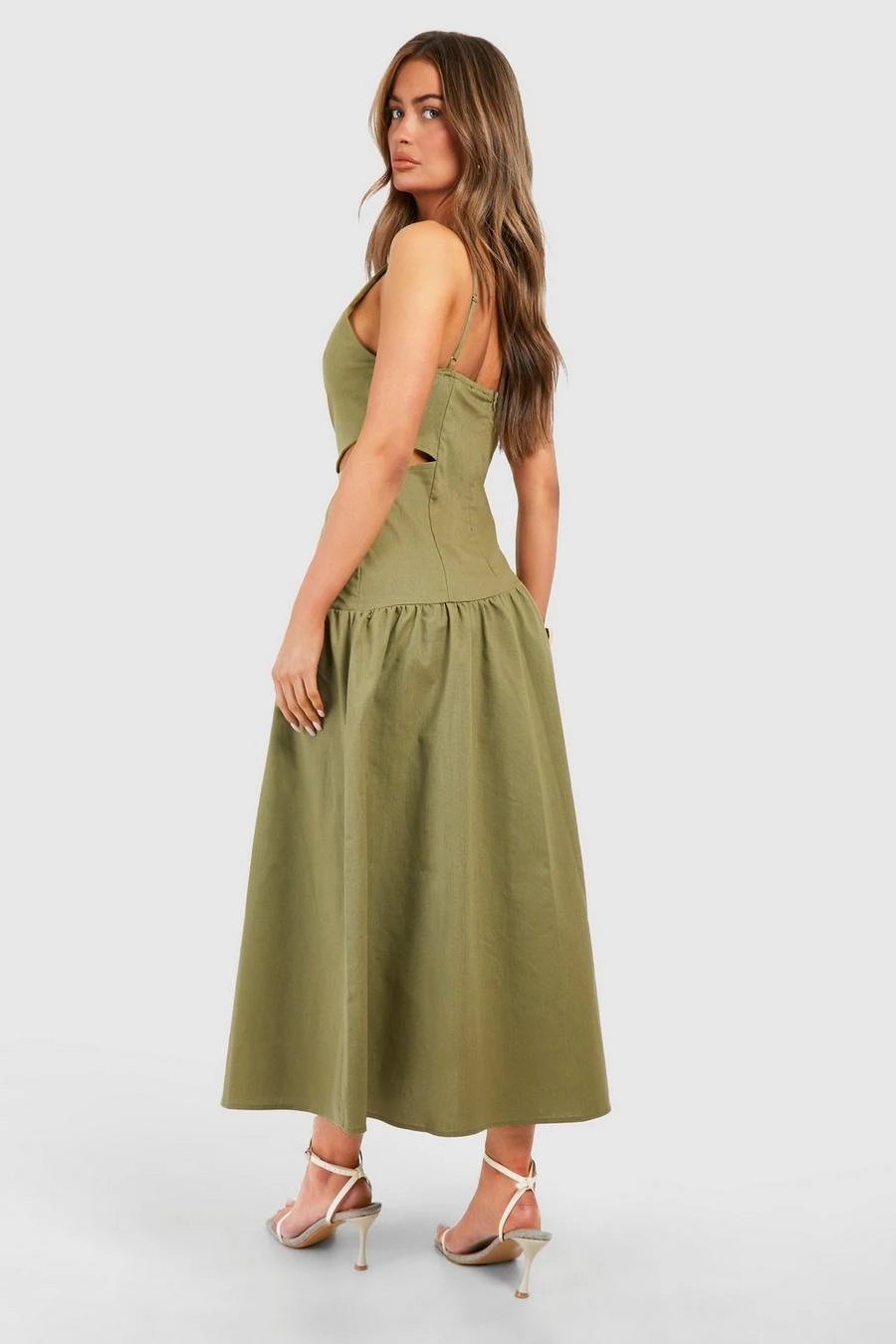 BOOHOO Linen Look Cut Out Asymmetric Midaxi Dress
