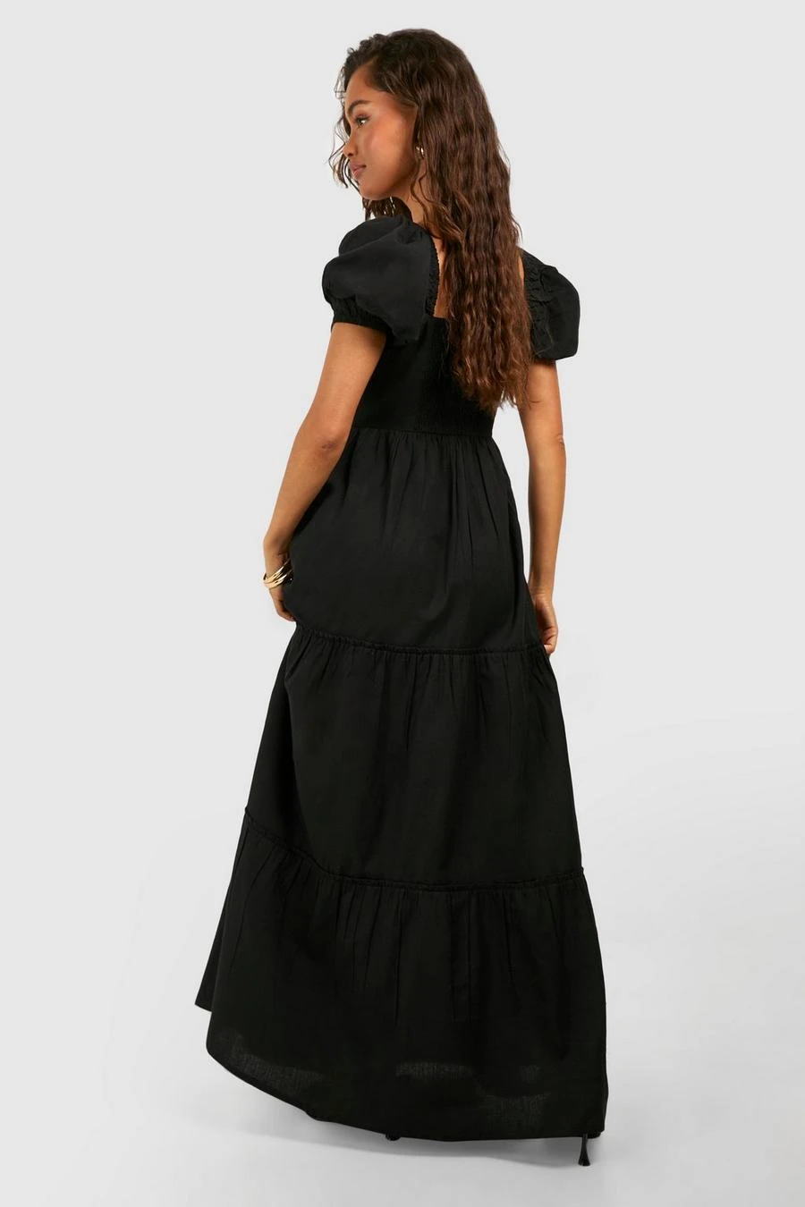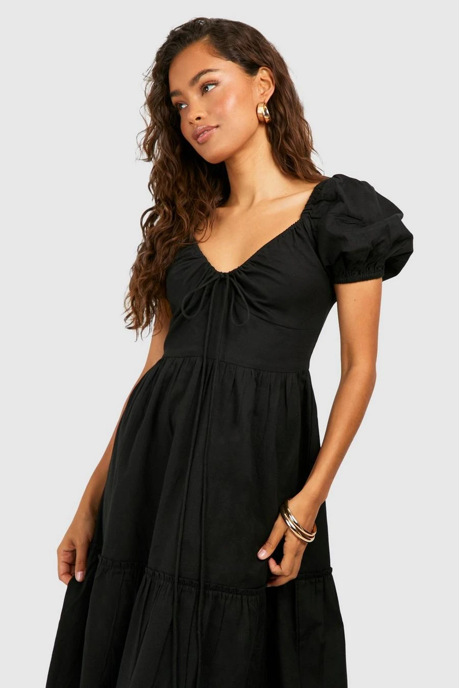BOOHOO Linen Look Puff Sleeve Maxi Dress