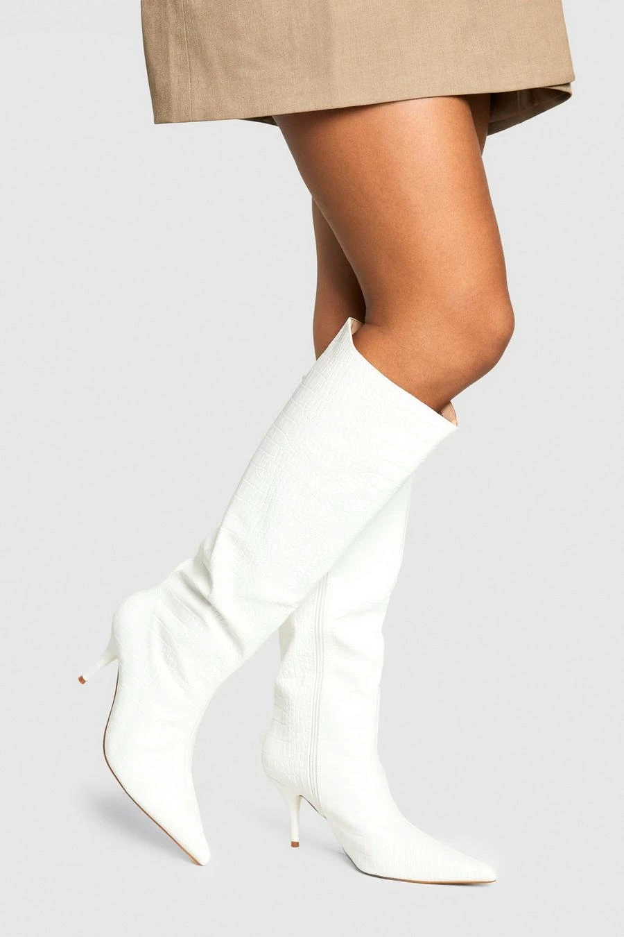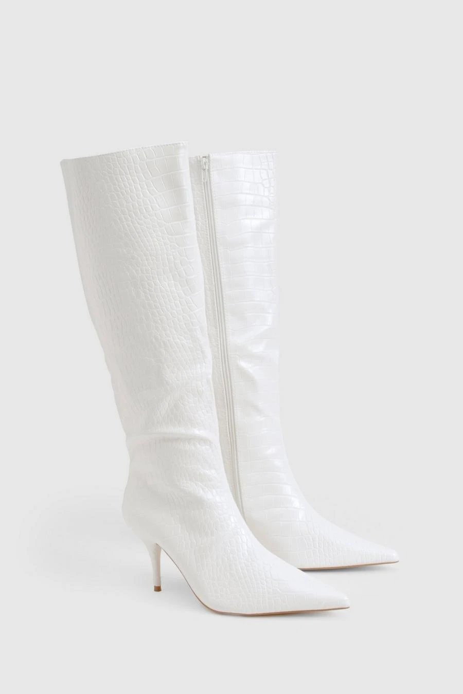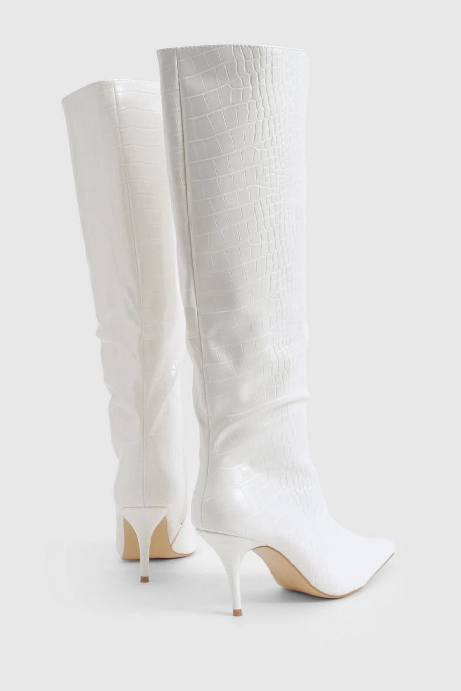 BOOHOO Low Heel Pointed Croc Knee High Boots