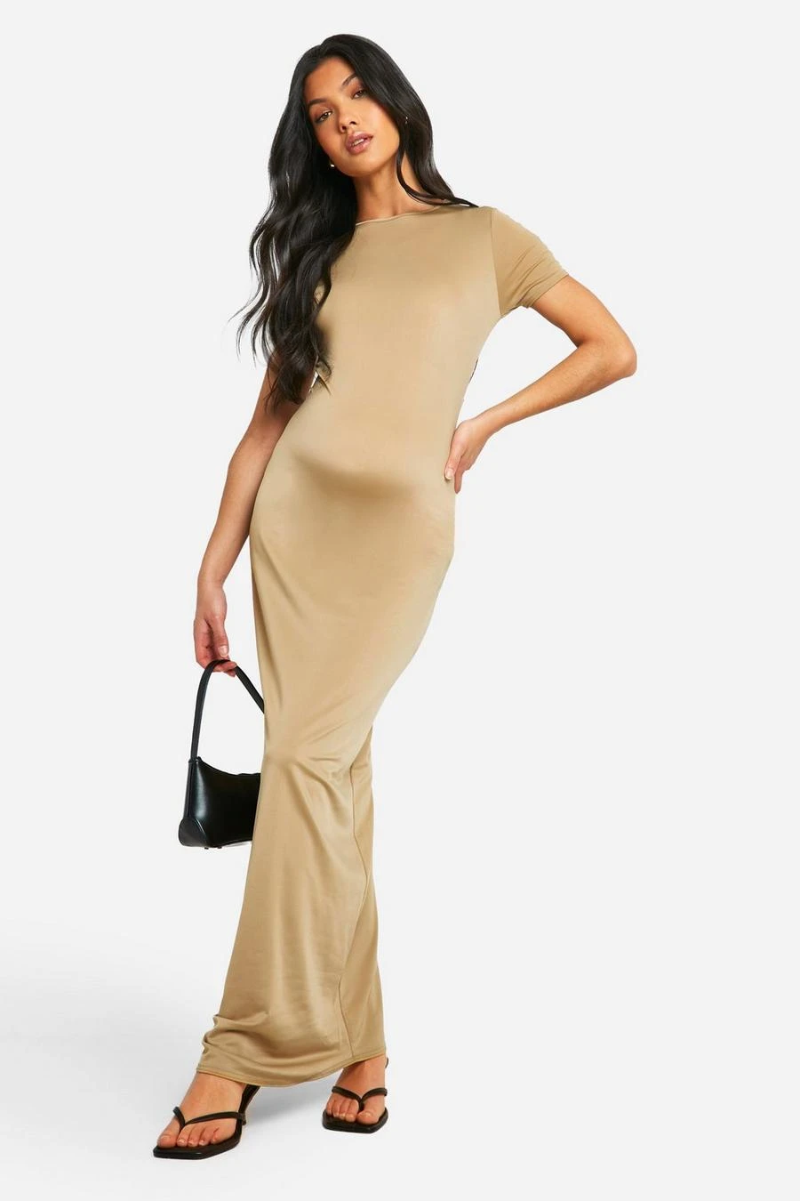 BOOHOO Maternity Premium Slinky Short Sleeve Maxi Dress