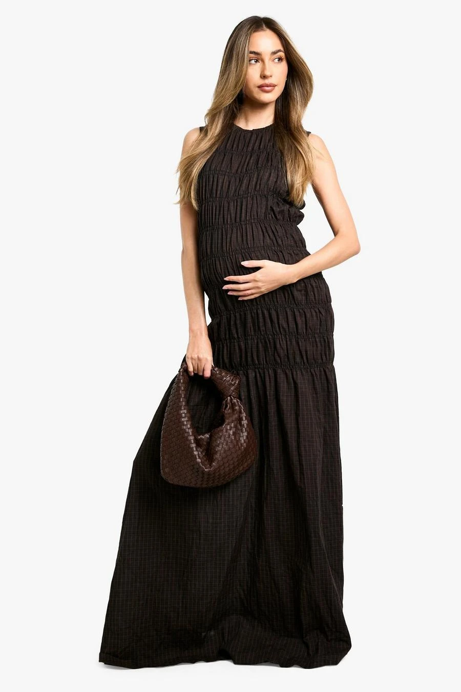 BOOHOO Maternity Shirred Maxi Dress