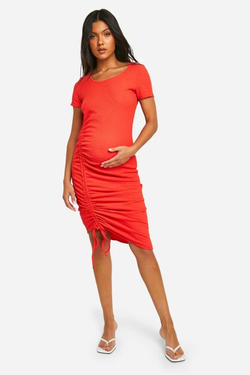 BOOHOO Maternity Textured Short Sleeve Ruched Midi Dress