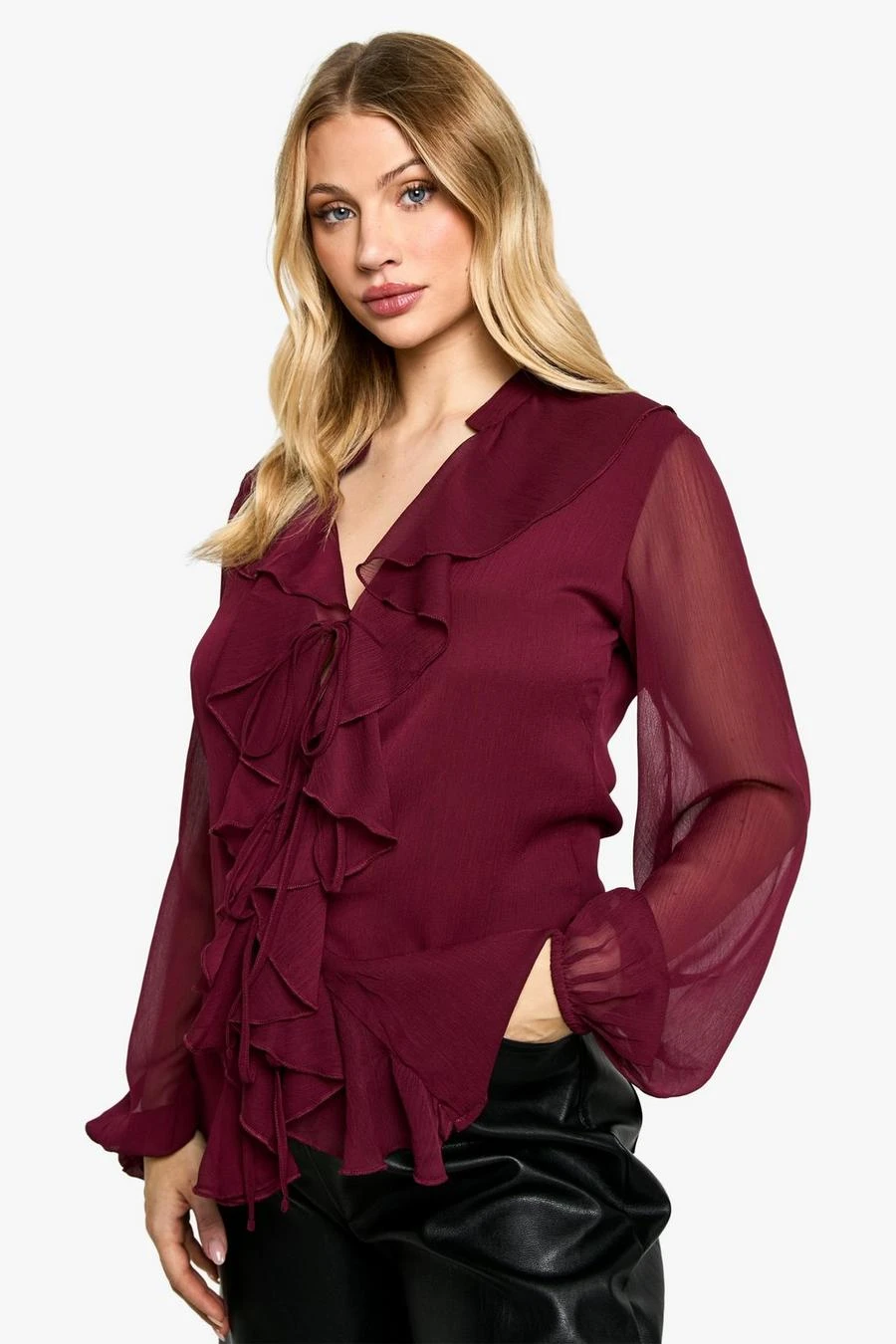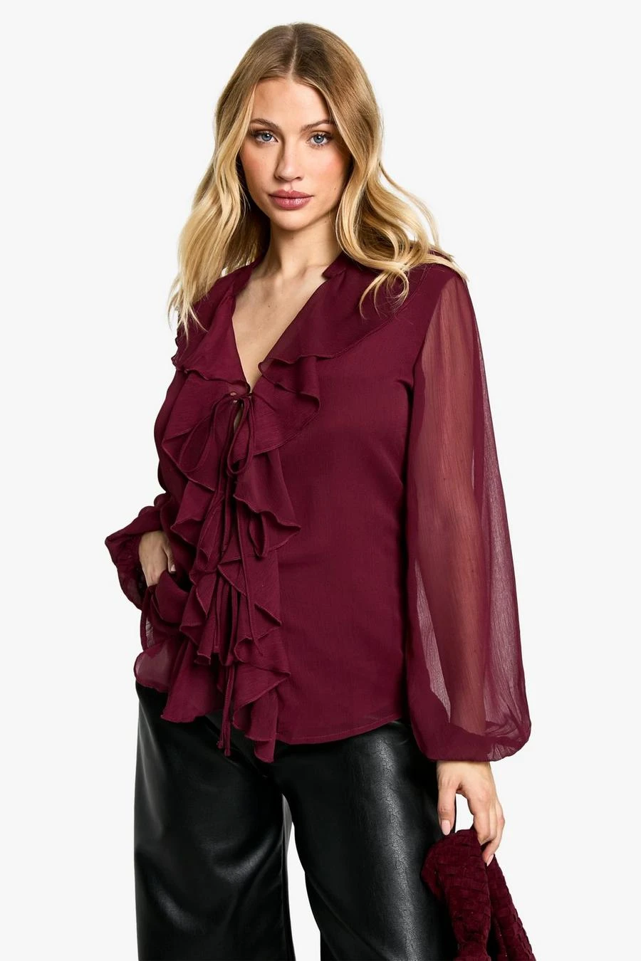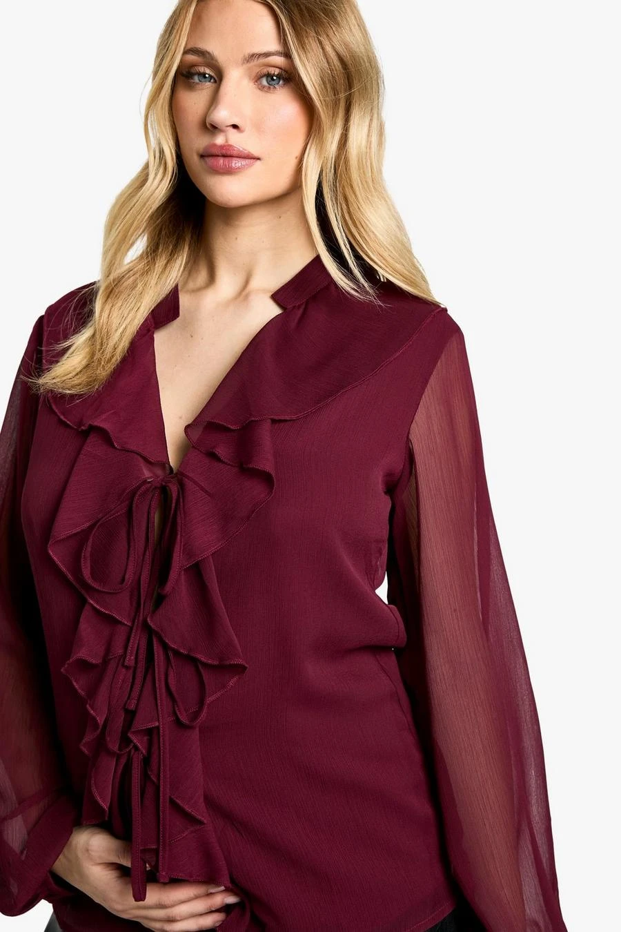 BOOHOO Maternity Tie Front Longline Frill Detail Blouse