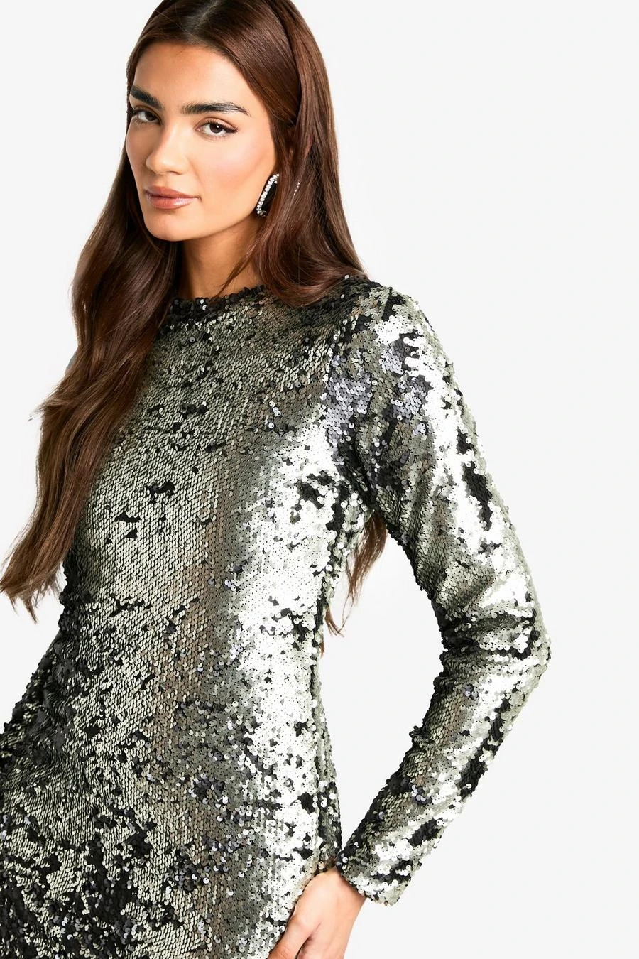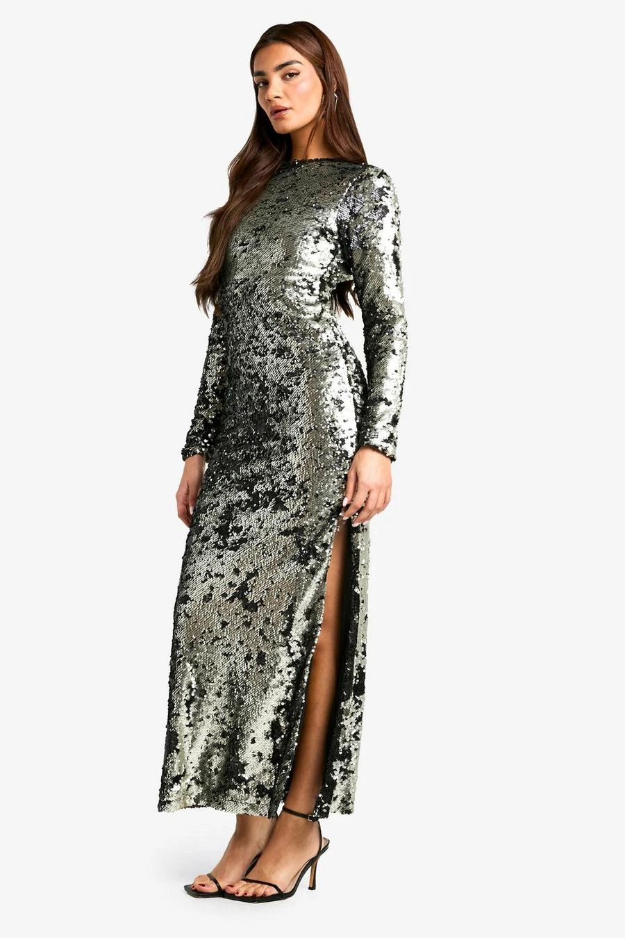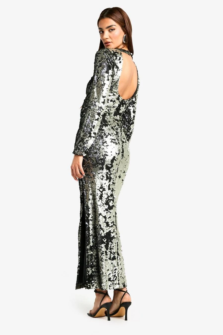 BOOHOO Matte Sequin Scoop Back Column Maxi Dress