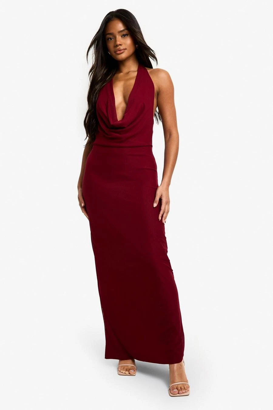 BOOHOO Mesh Extreme Cowl Neck Maxi Dress