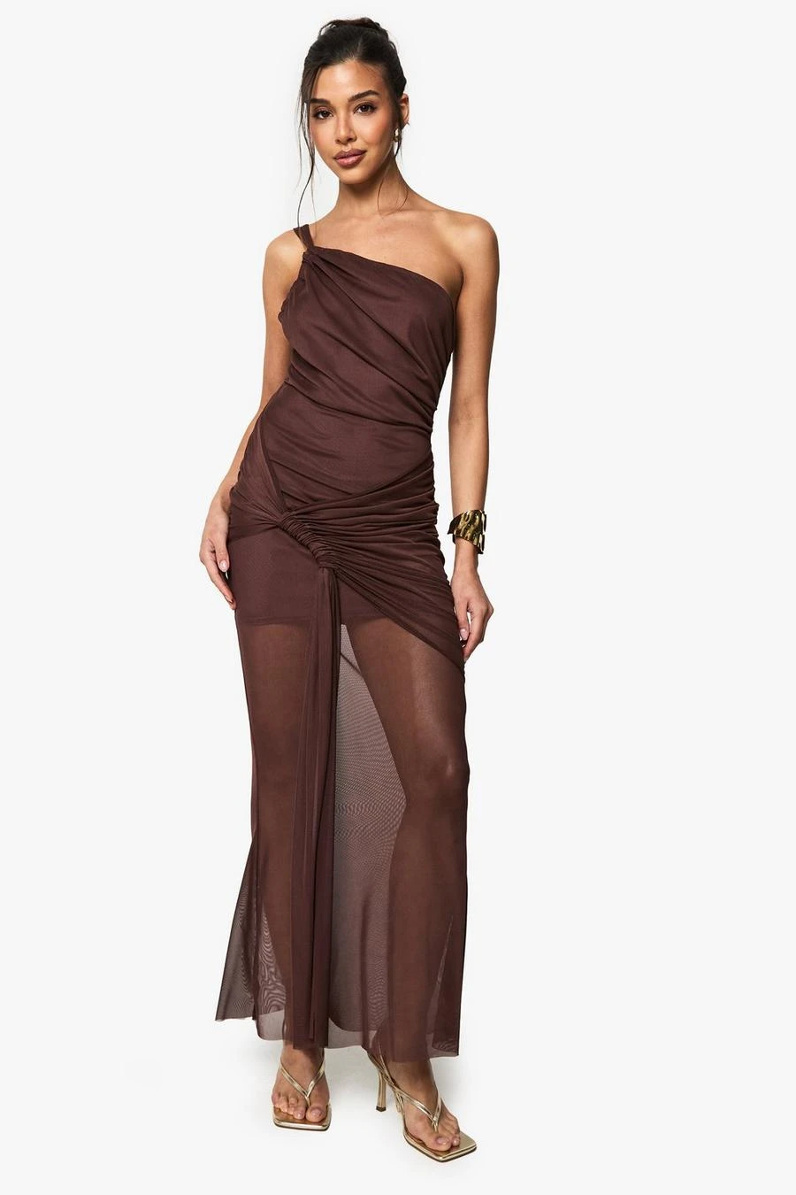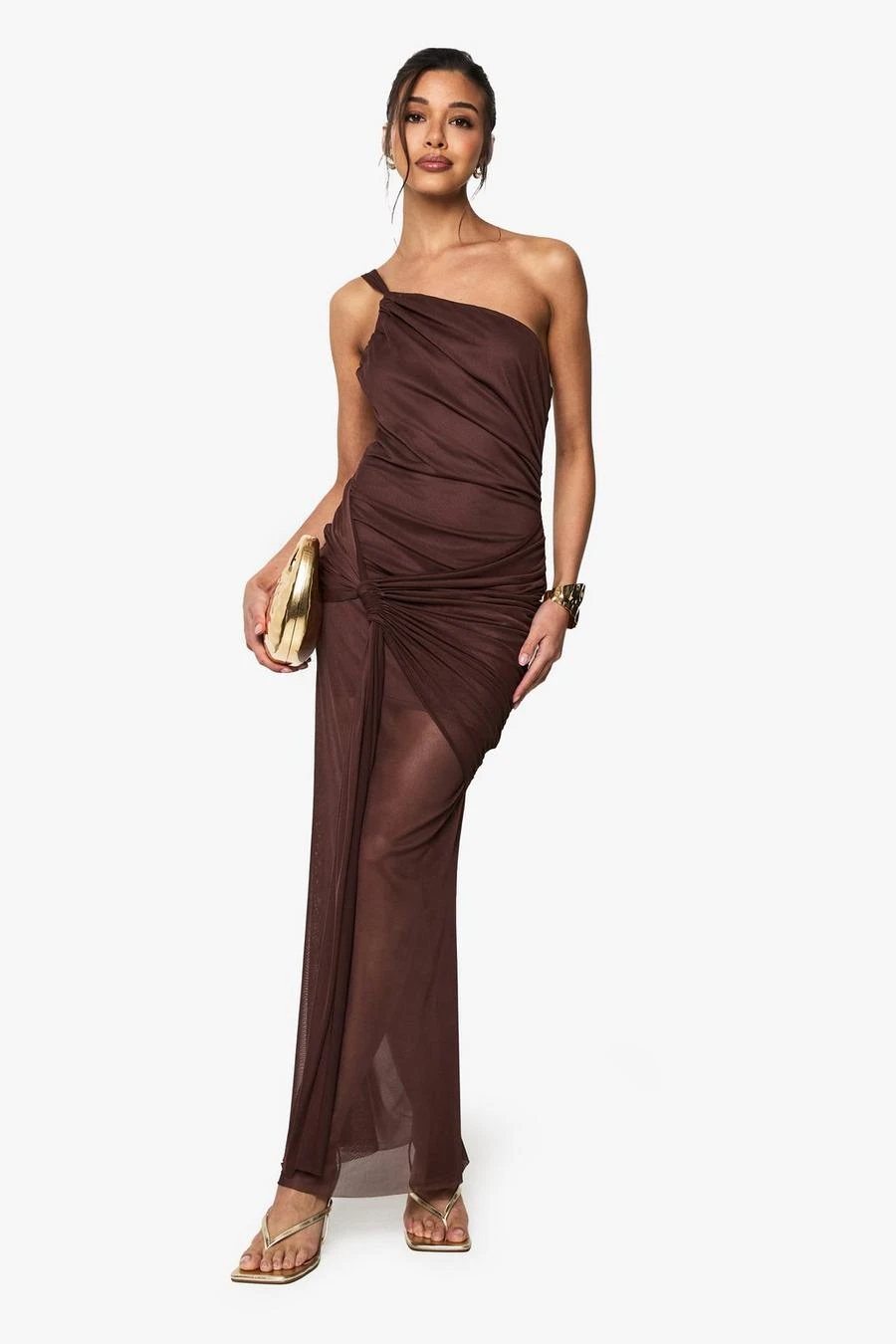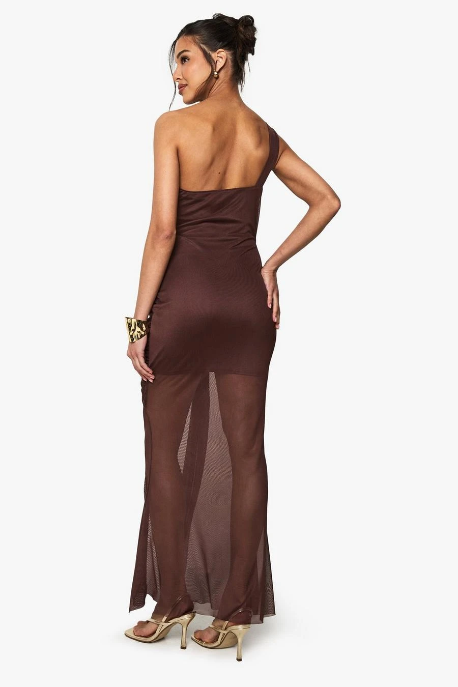 BOOHOO Mesh One Shoulder Ruched Maxi Dress