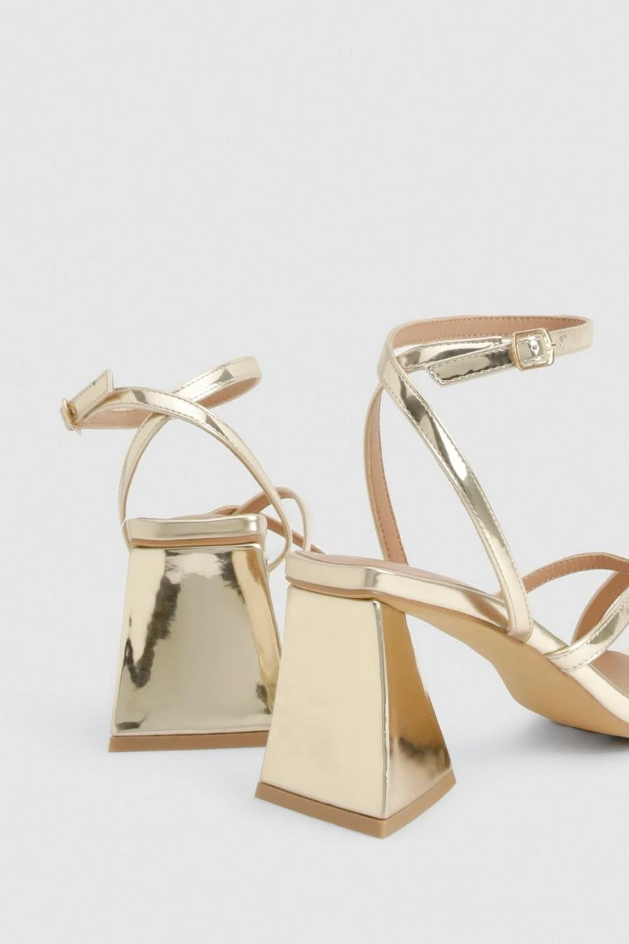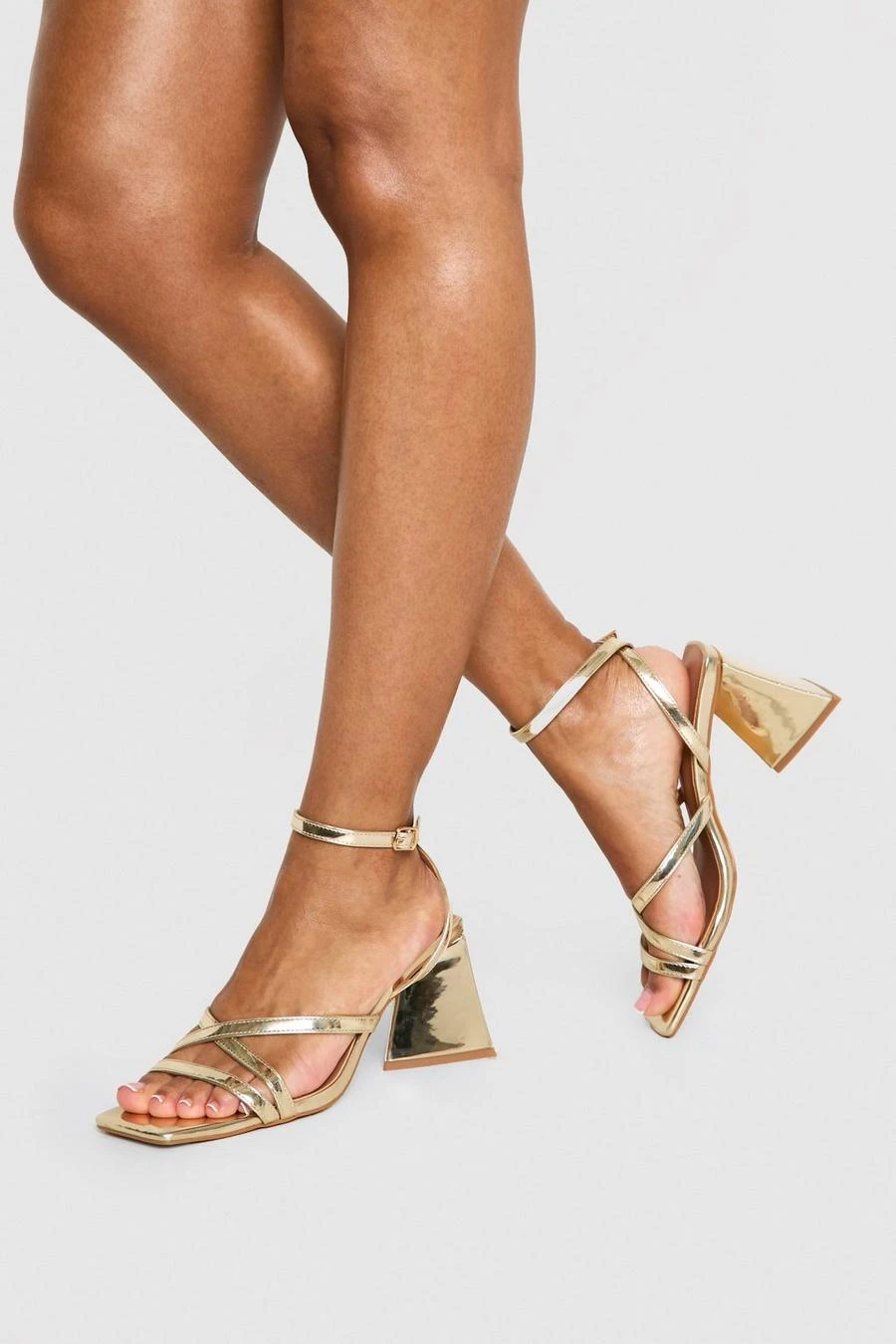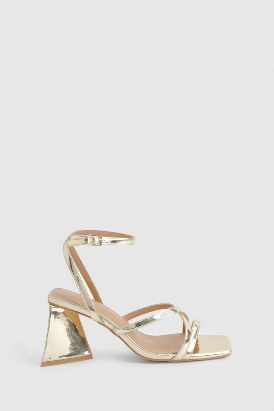 BOOHOO Metallic Flared Heel Crossover Sandals