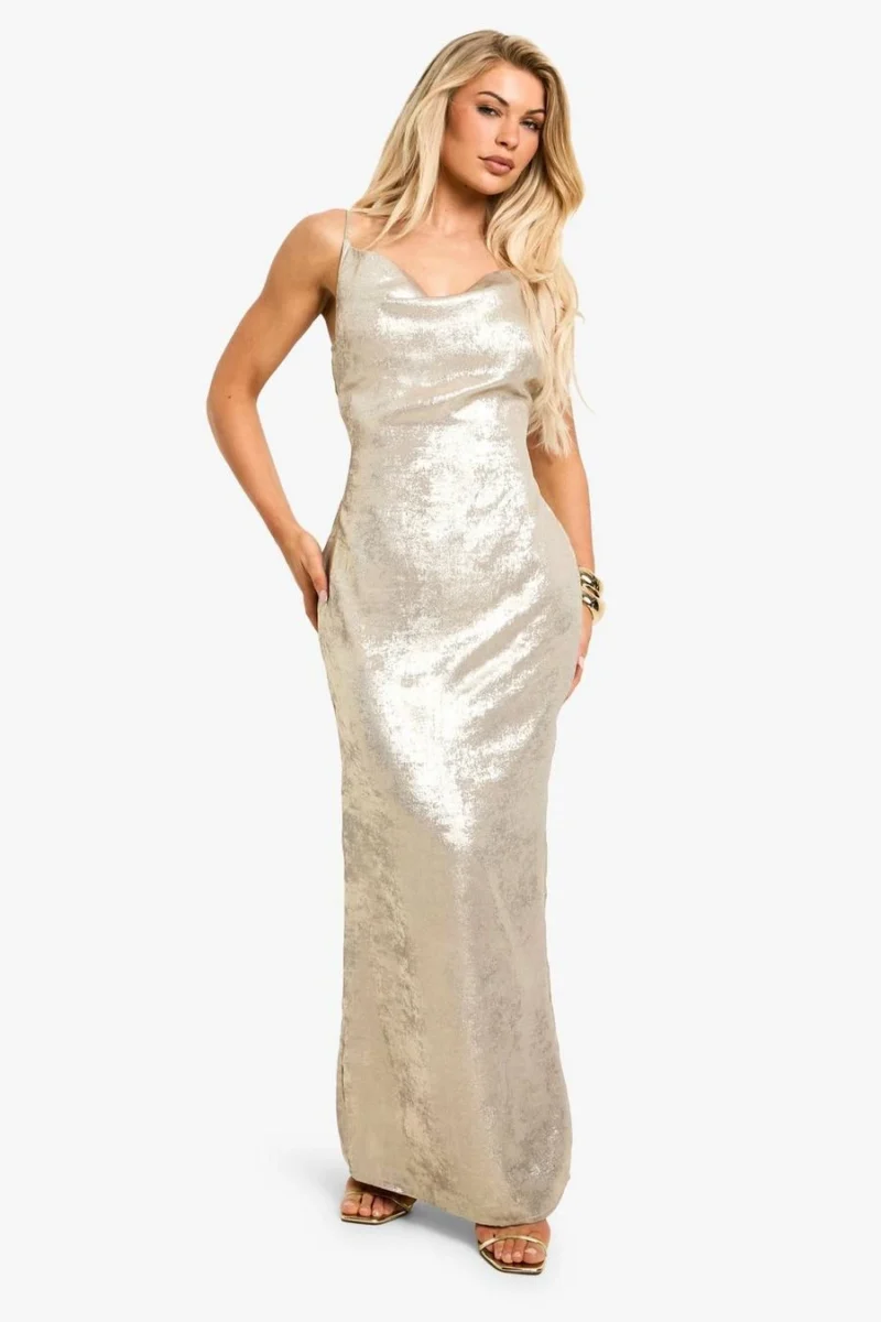 BOOHOO Metallic Foil Maxi Dress
