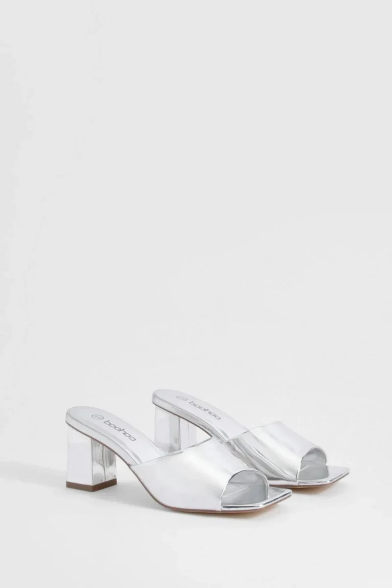 BOOHOO Metallic Low Block Heeled Mule